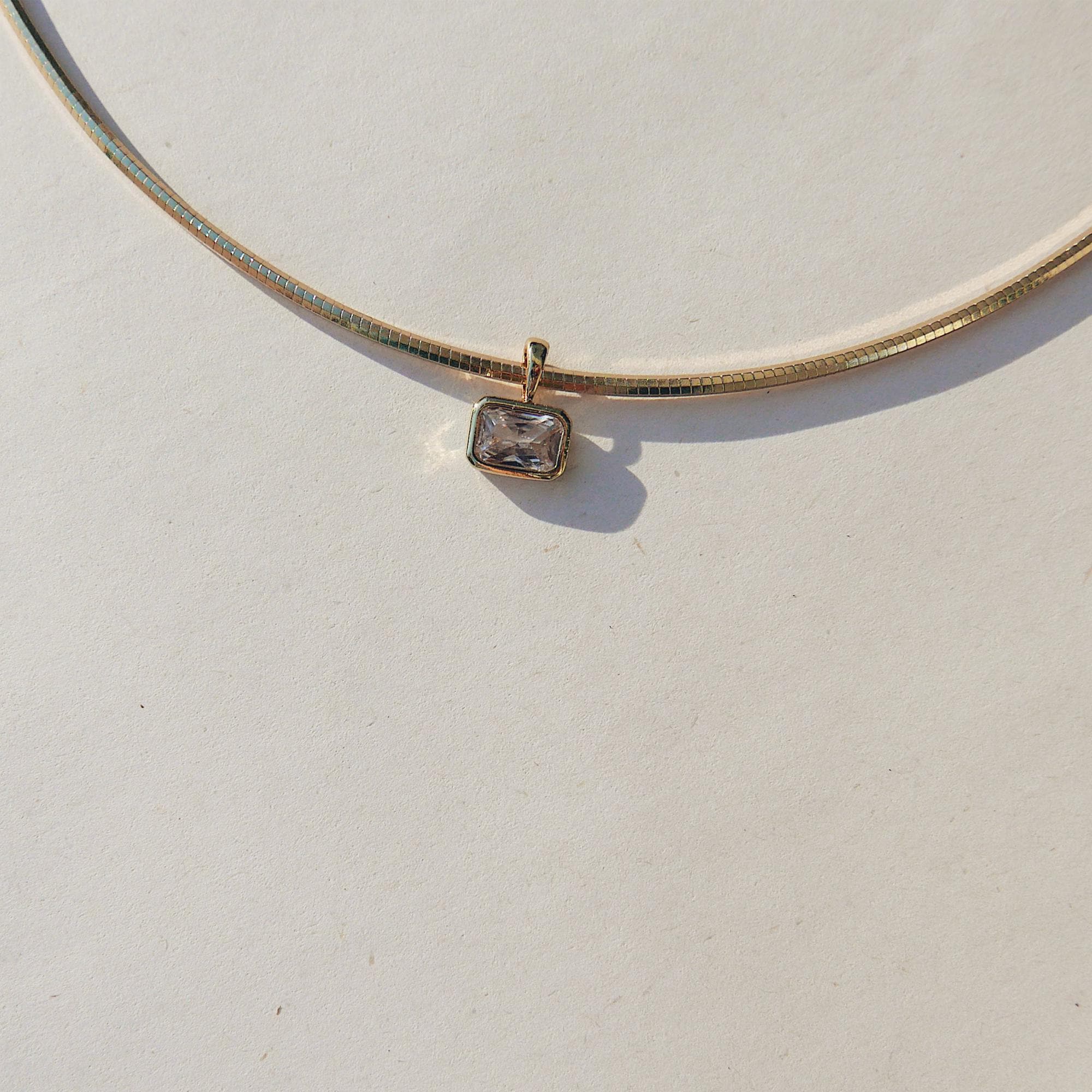 "This omega (some call it snake) wire collar necklace is paired with an emerald cut bezel penda...