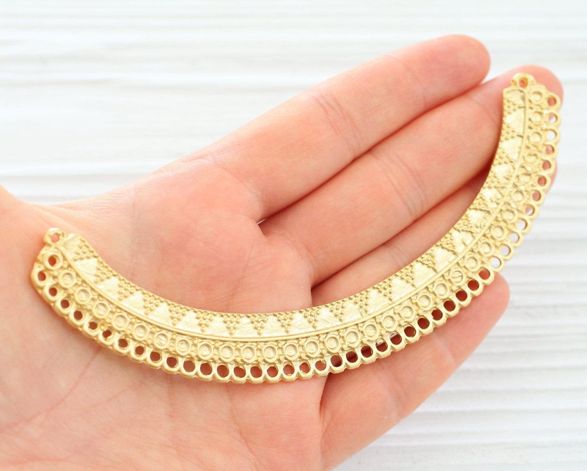Large gold collar necklace, gold crescent necklace, collar pendant,...