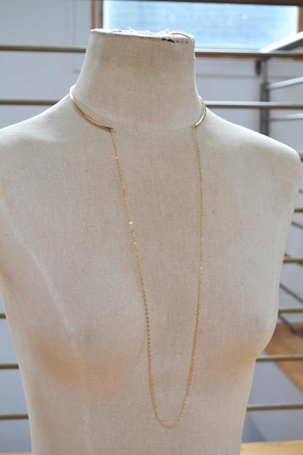 Gold Metal Choker with Long Chain, Gold Collar, Open Choker Necklac...
