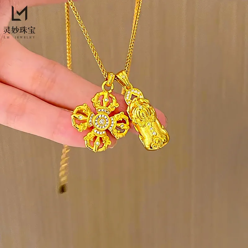 Diamond-Studded Pixiu Vajra Pendant Women 24K Gold AU999 - Layered ...