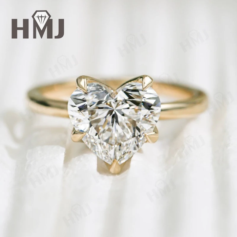 5Prongs Heart Ring Pendant Necklace 10k 14k 18k Gold Moissanite Diamond Engagement Proposal Wedding ...