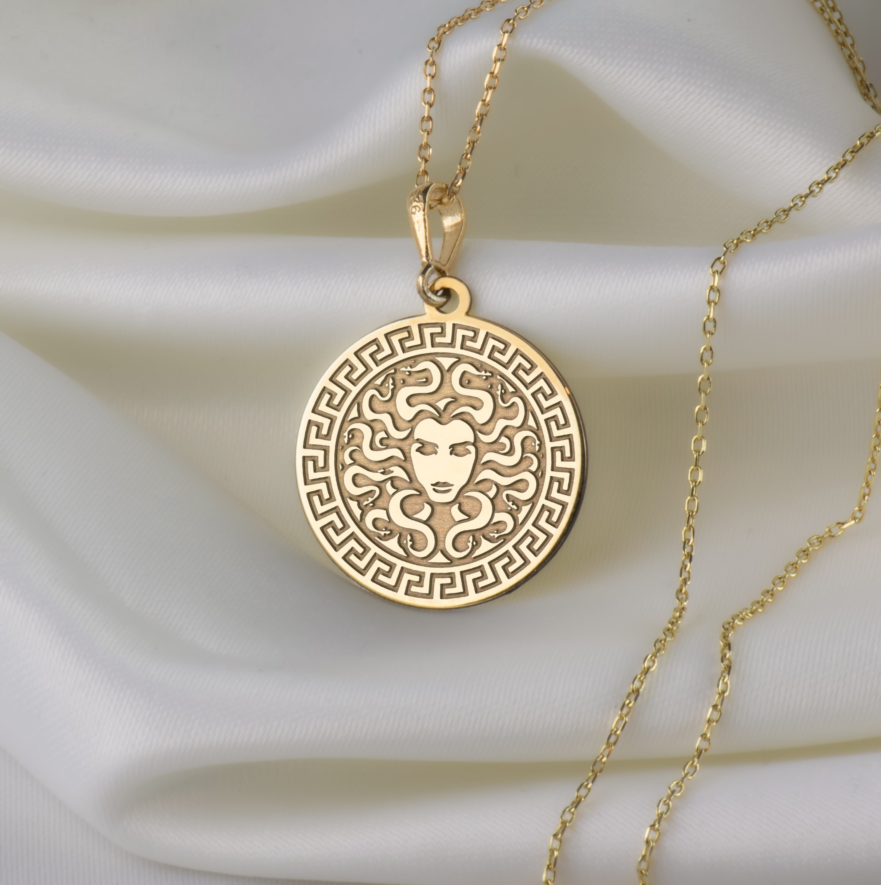 14K Solid Gold Medusa Necklace, Personalized Medusa Pendant, Medusa...