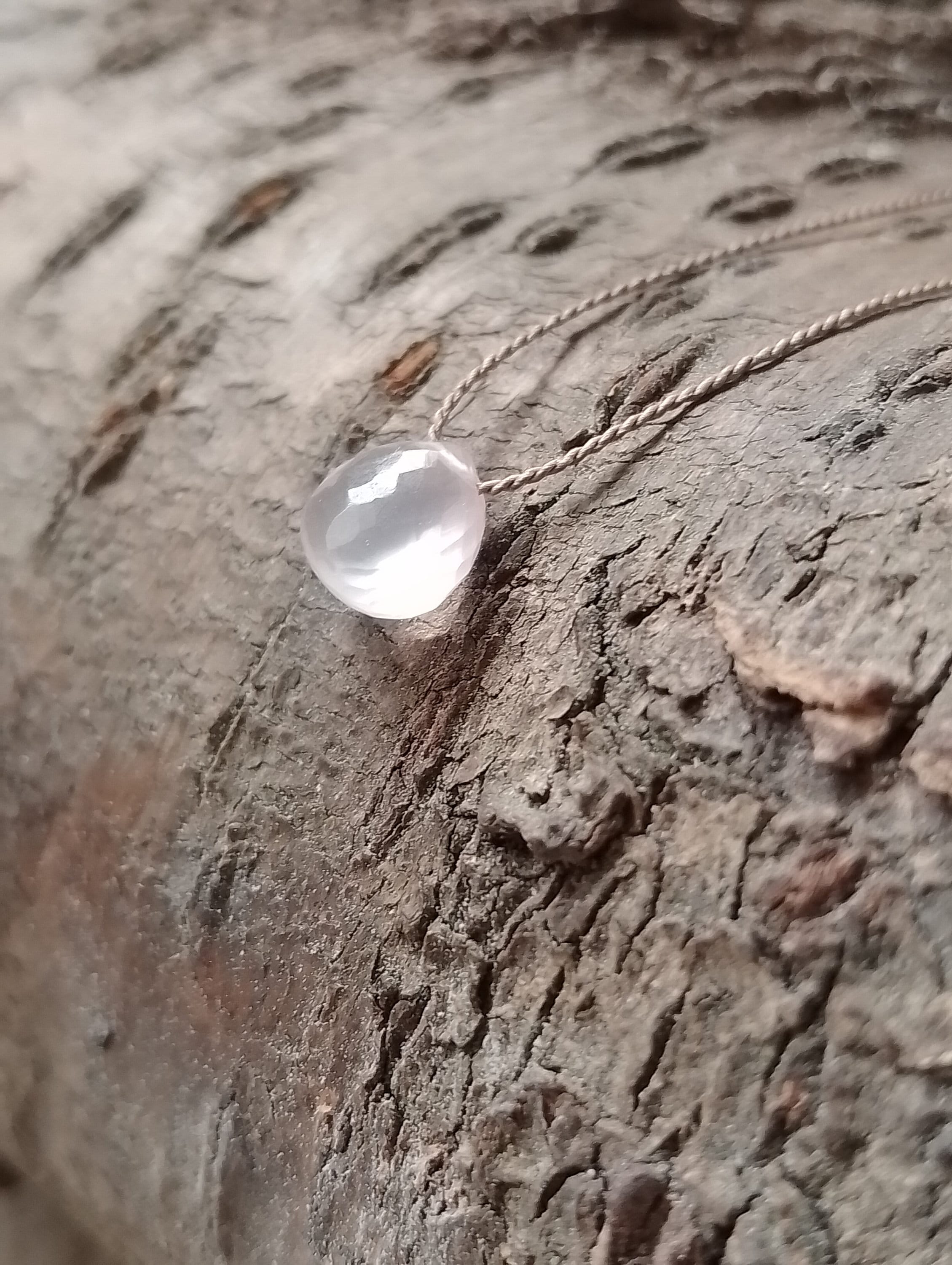Rose Quartz Necklace, Heart Briolette, Floating Silk, Gemstone on s...