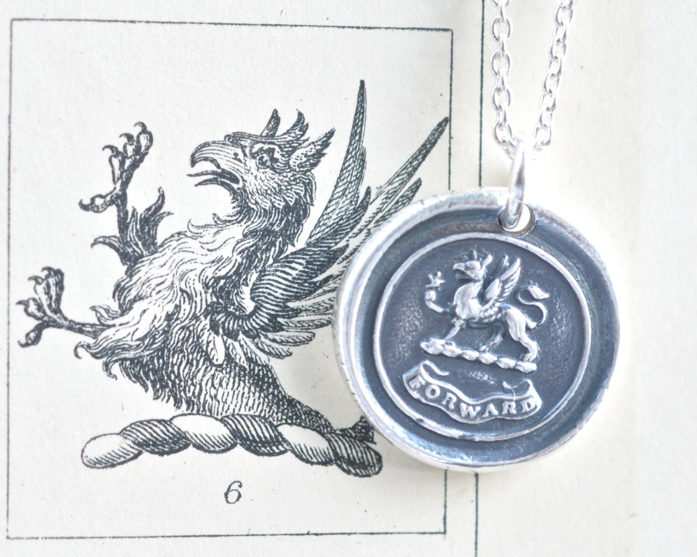 "Move forward with a mystical legendary griffin wax seal necklace pendant. The griffin, is a le...