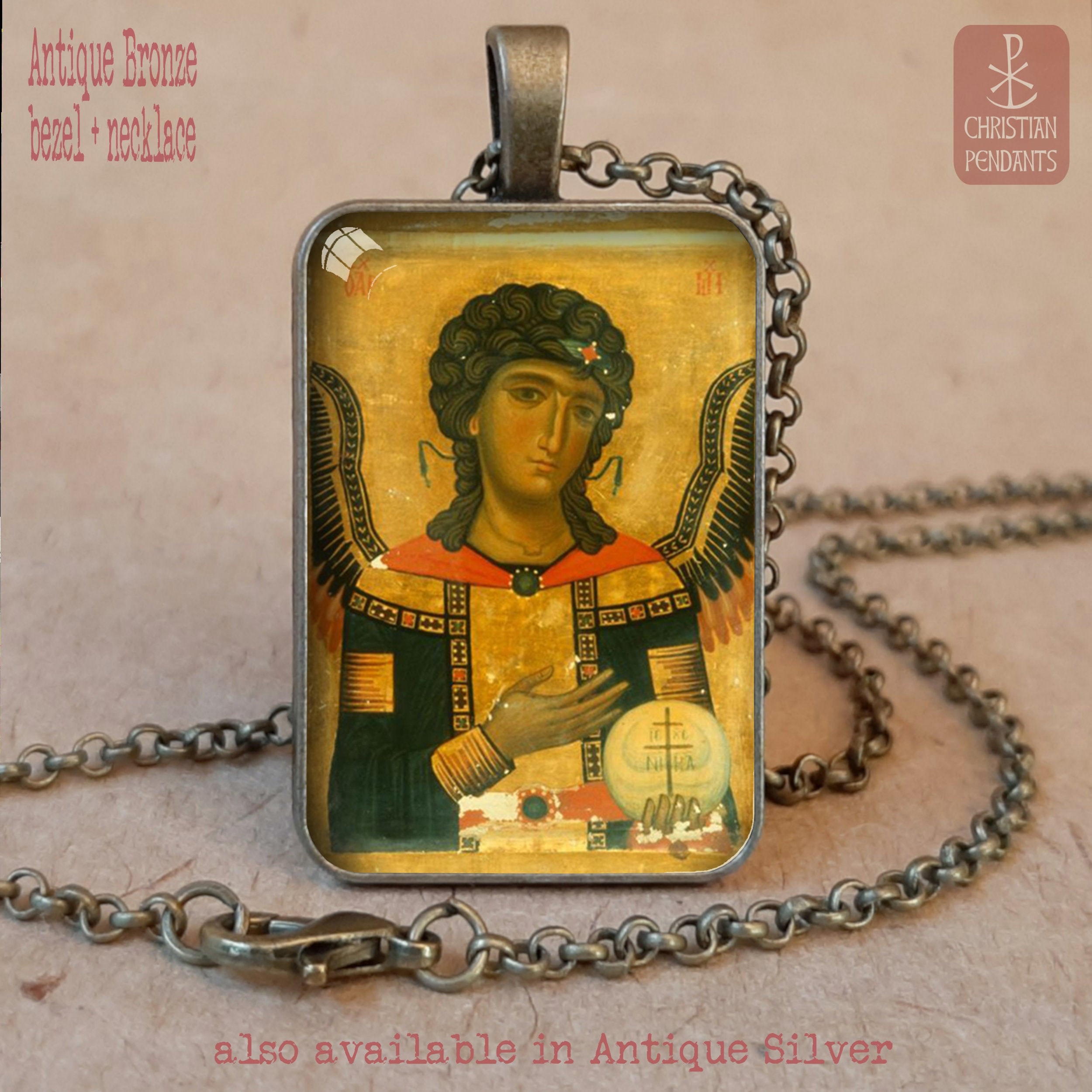 "Archangel Michael icon pendant necklace or keychain, Arch Angel Michael, Pastor gift, Godfathe...