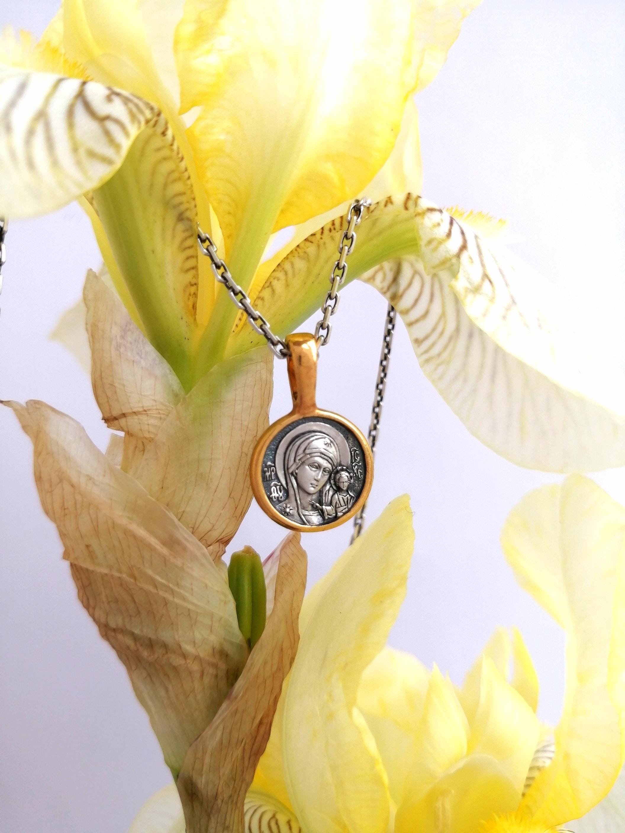 Handmade Pendant Kazan Icon of the Mother of God Christian Charm Or...