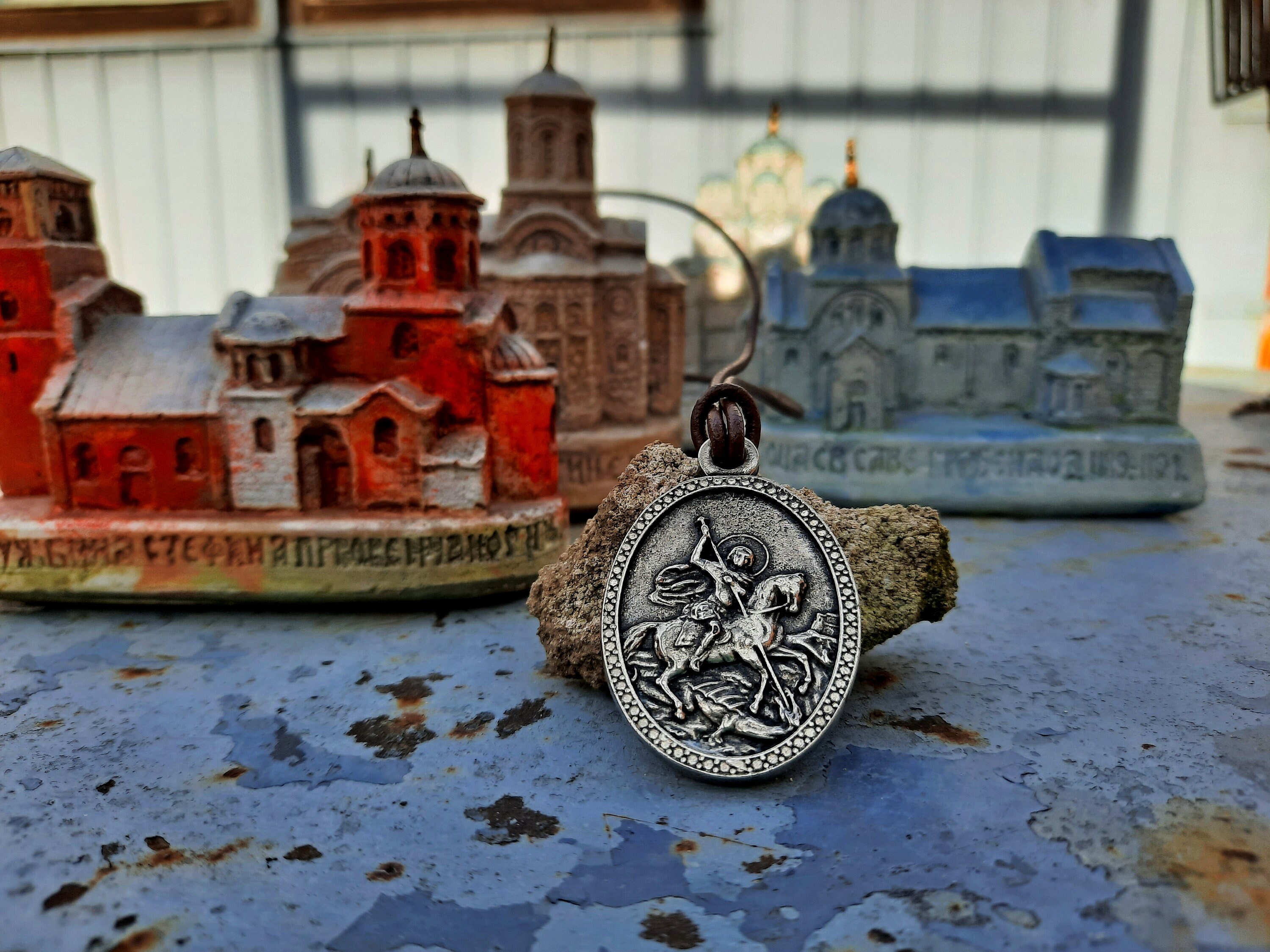 Saint George and the Dragon leather necklace,orthodox Christian jew...