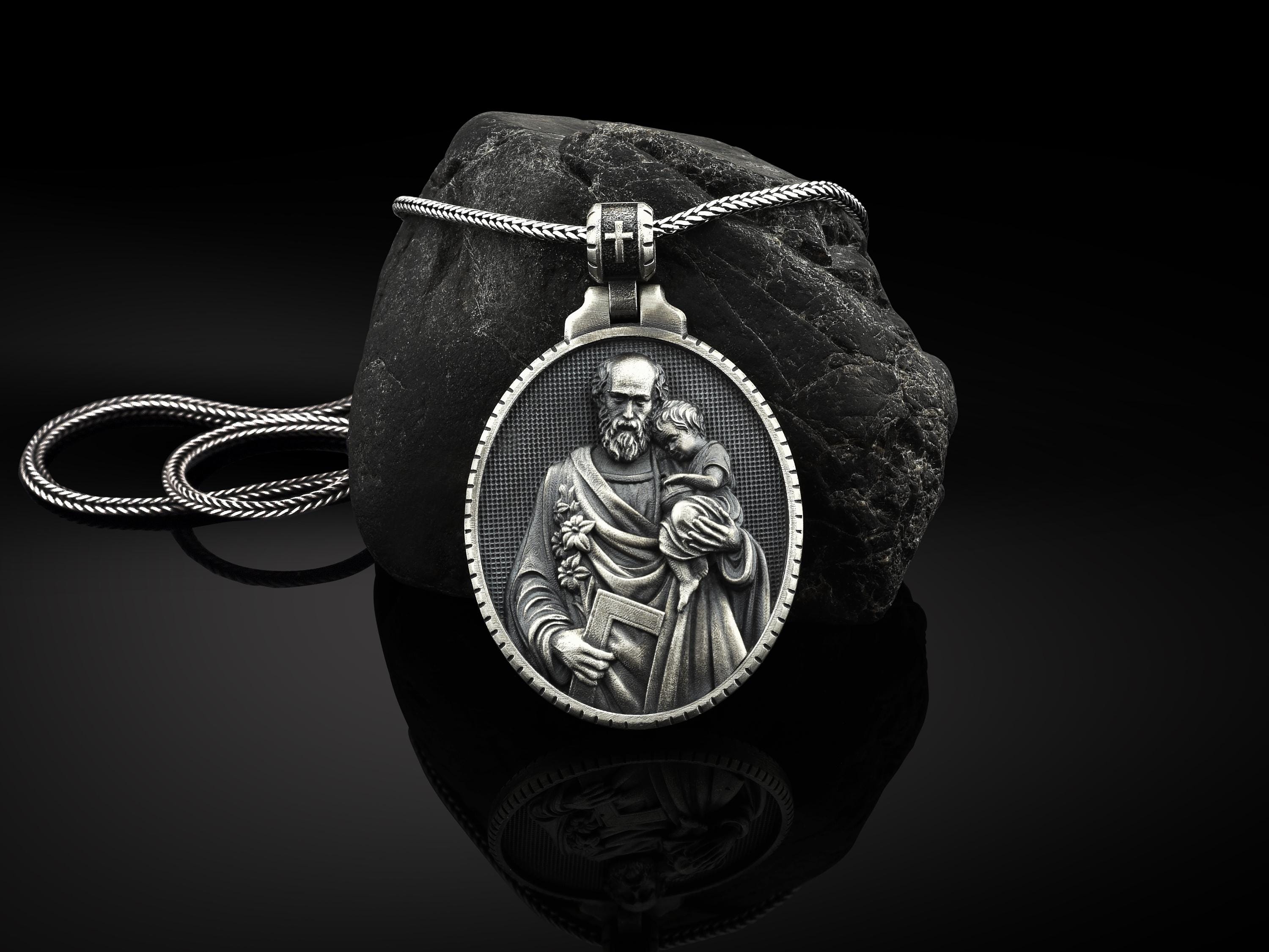 Silver Saint Joseph Necklace, Saint Joseph Mens Pendant, Christian ...