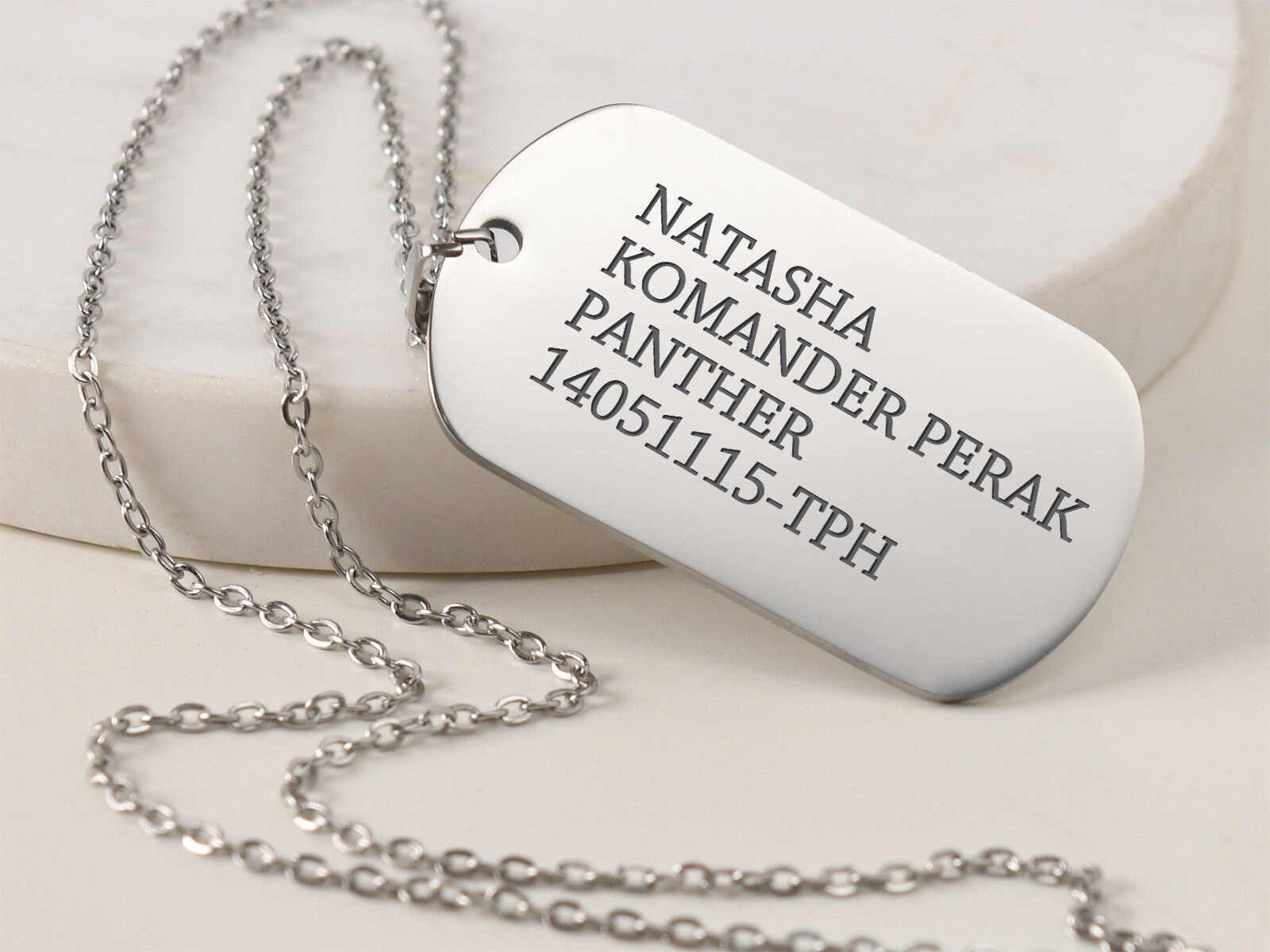 "ENGRAVED DOG TAG NECKLACE PRODUCT FEATURES Material: High-quality 925 sterling silver & 14...