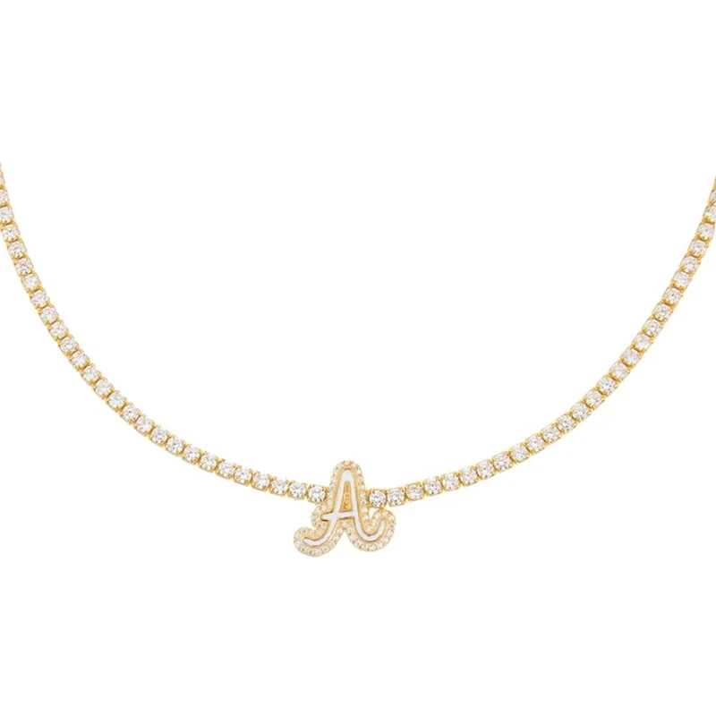 DUOYING Enamel Script Initial Tennis Choker Letter With Tennis Chain Choker Initial A-Z Letters Zirc...