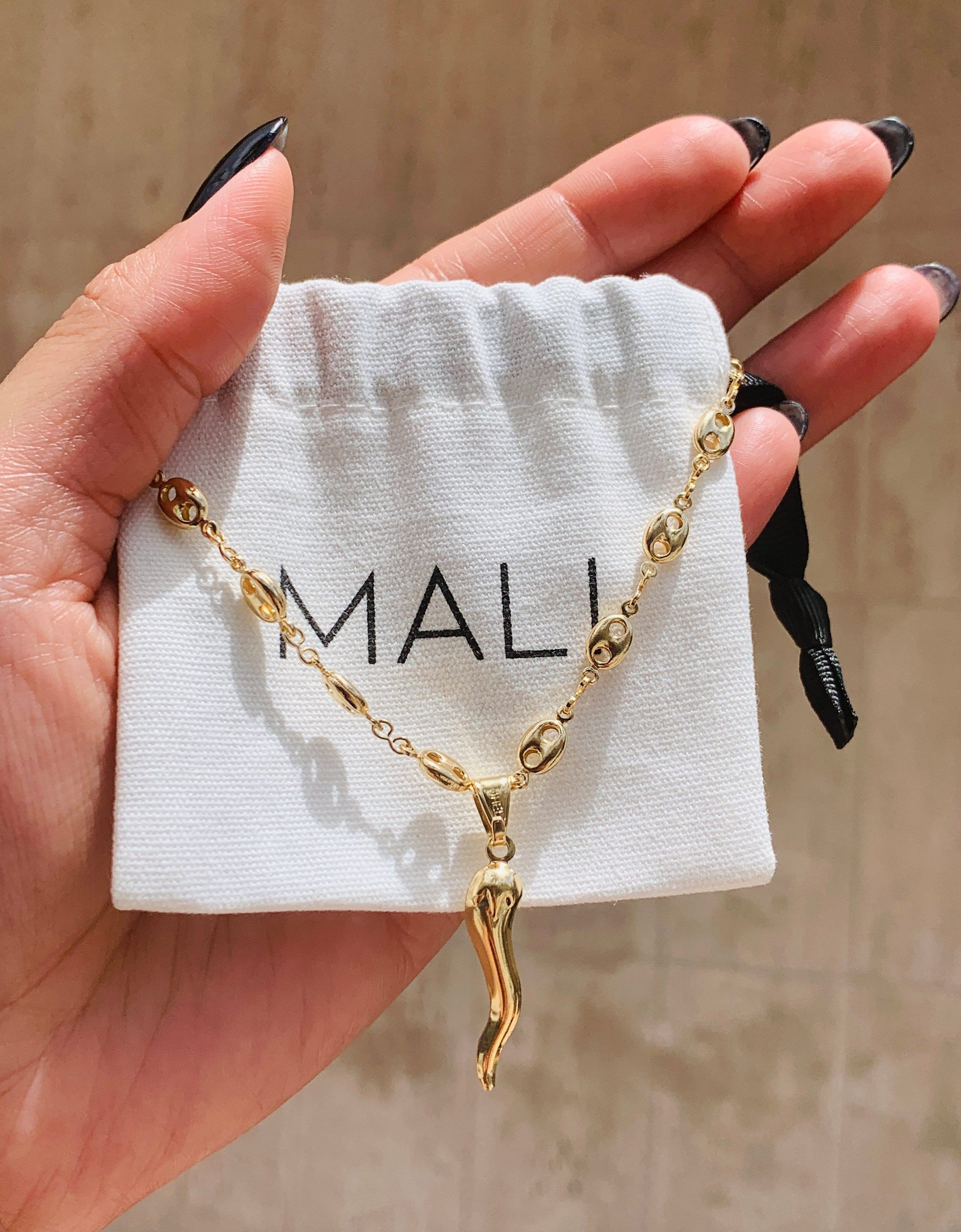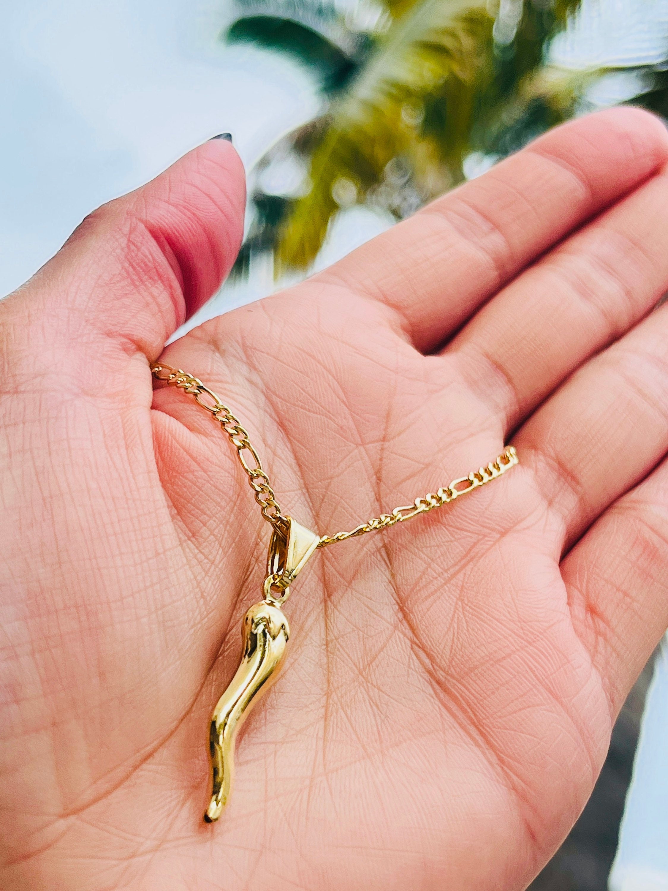 18K Italian Cornicello Necklace, Gold Filled Italian Amulet Necklac...