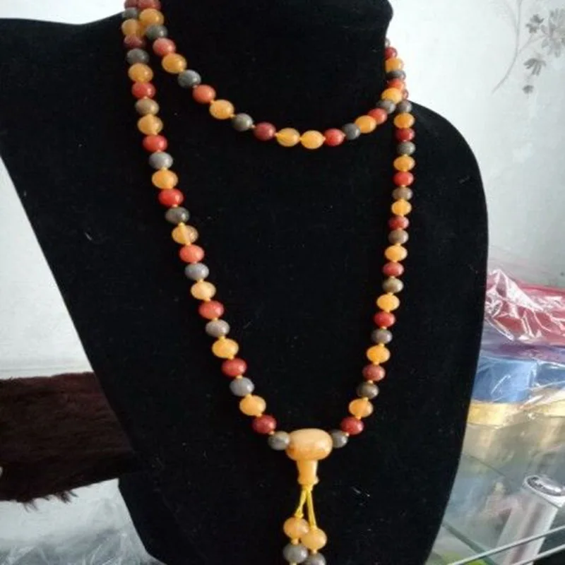 G-G 36'' Natural Mix Color Gold Edge Plated Cat eye CZ zircon Jade Brushed Beads Long Necklace Party...
