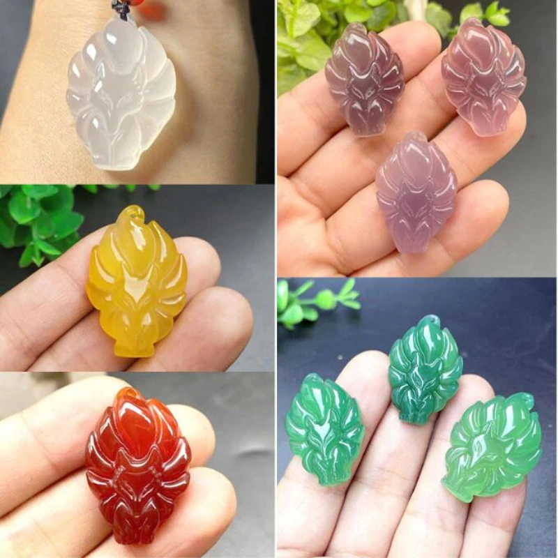 Agate Chalcedony Nine-tailed Fox Pendant Fashion Jewelry Gift Multi-colored Jade Lucky Amulet Women'...