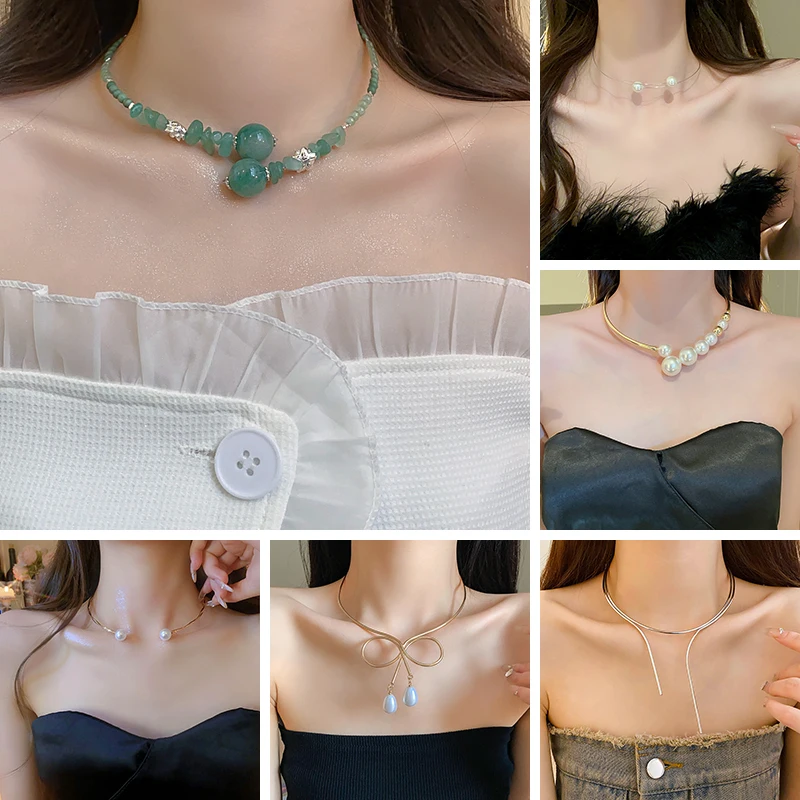 Beaded Lotus Jade Torques for Women Bowknot Water Drop Imitation Pearl Wave Metal Style Personality ...