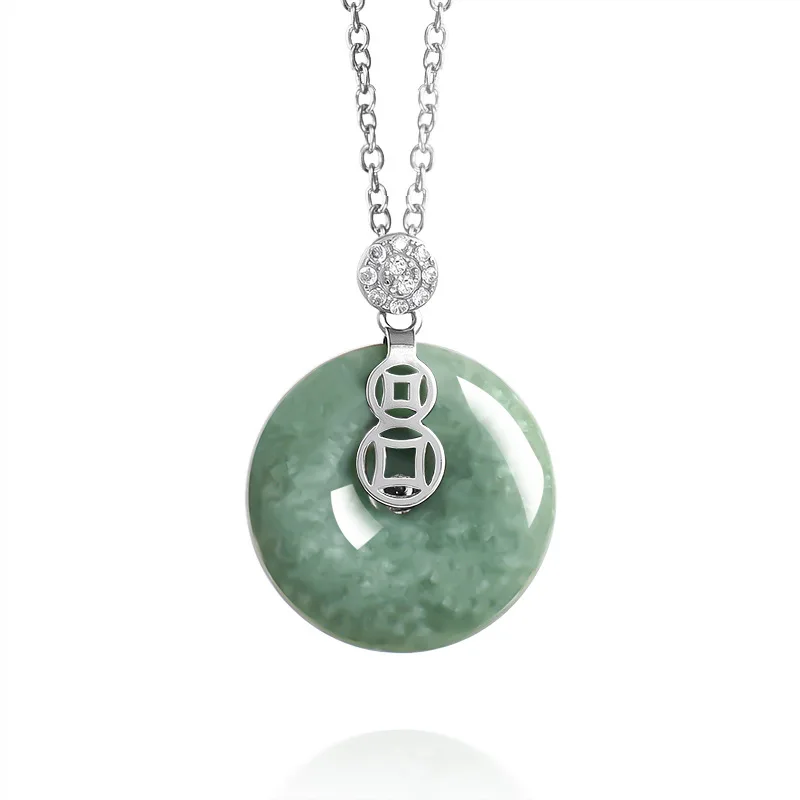 Natural Green Jade Safety Buckle Pendant Necklace Hand-Carved Charm Jadeite Jewelry Fashion Amulet G...