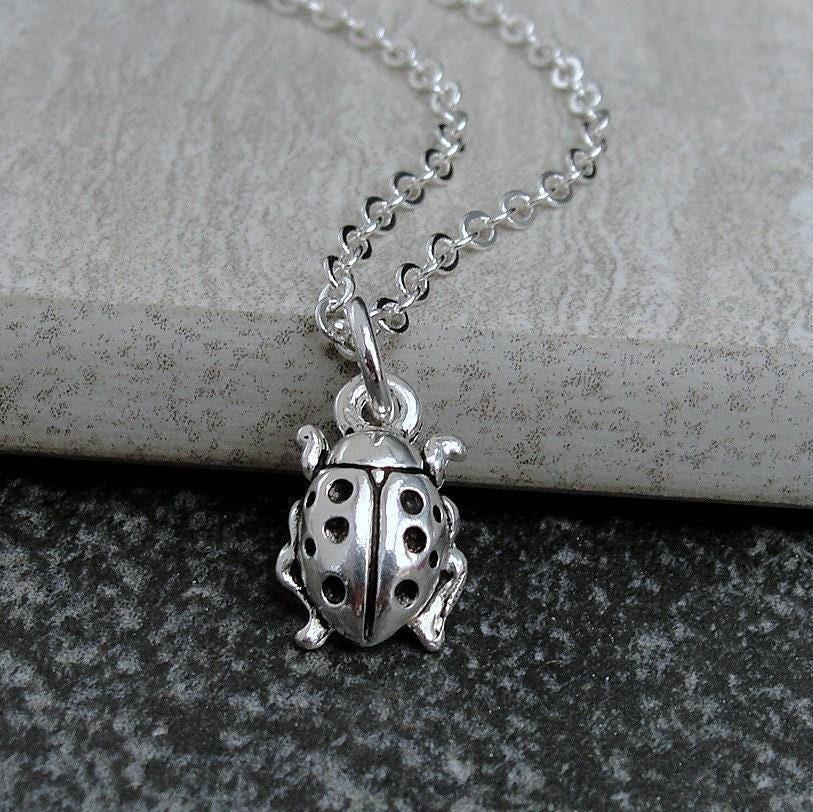 Silver Ladybug Necklace, Tiny Ladybug Charm, Ladybug Pendant, Beetl...