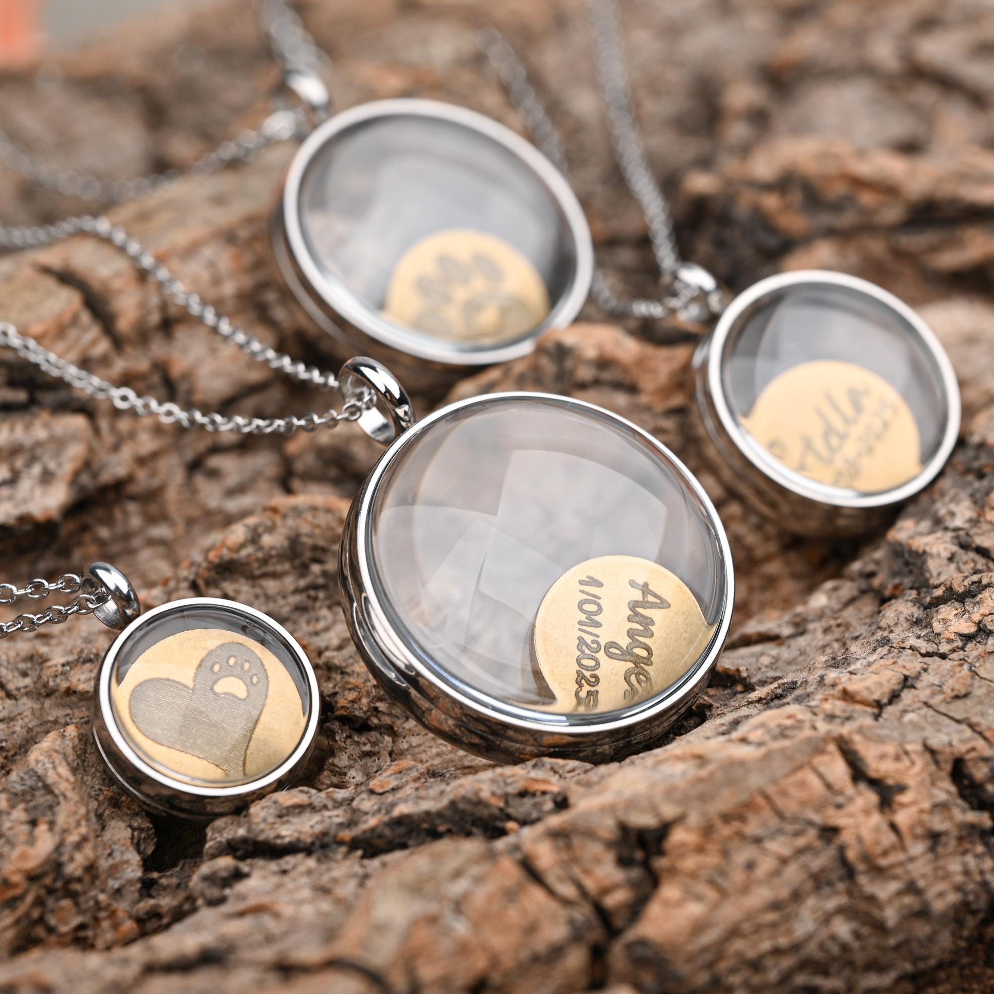 "Personalized Pet Memorial Glass Locket Necklace - Custom Cremation Jewelry Keepsake. Preserve ...