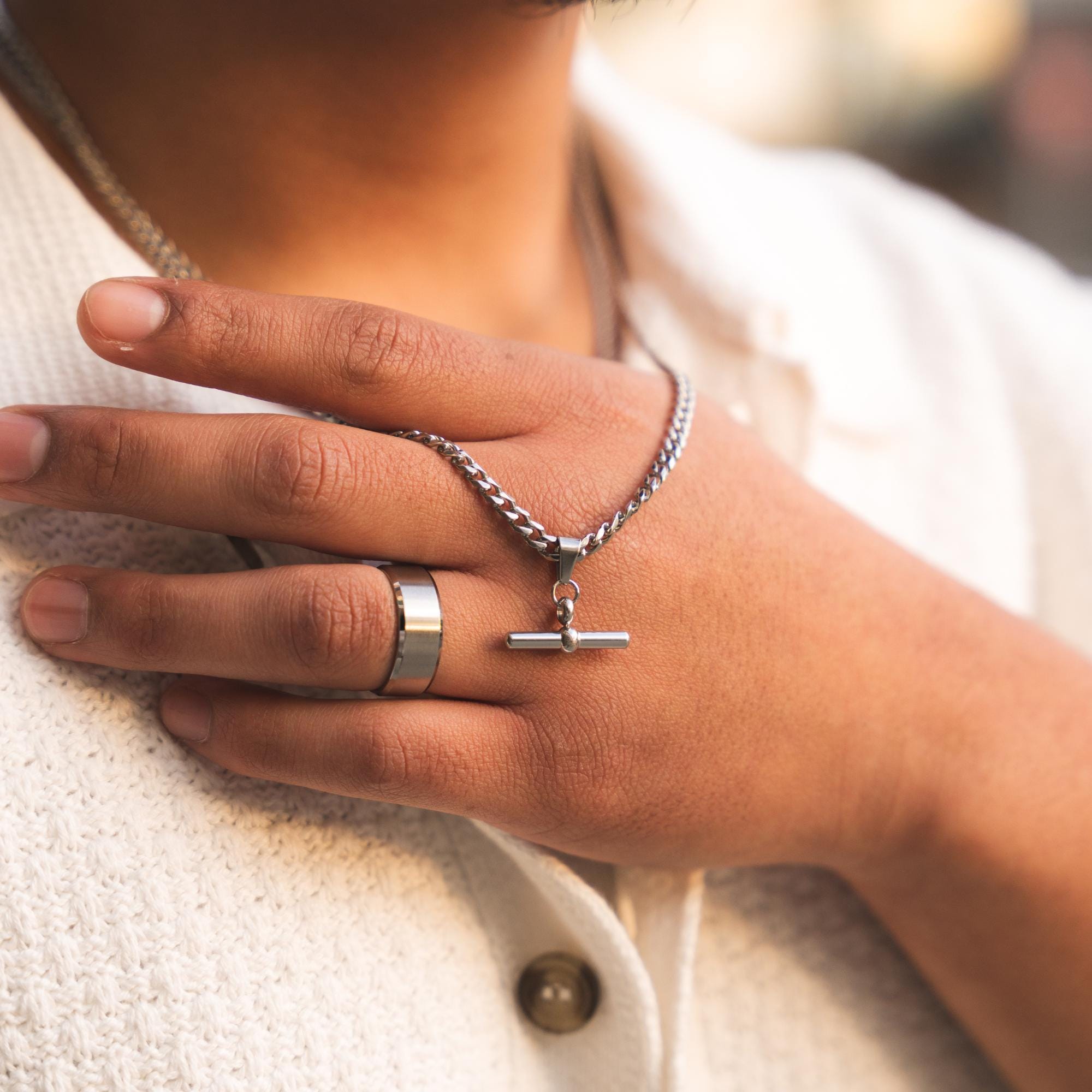 • Mens Necklace - T Bar Pendant Necklace For Men - Silver Chain Penda...