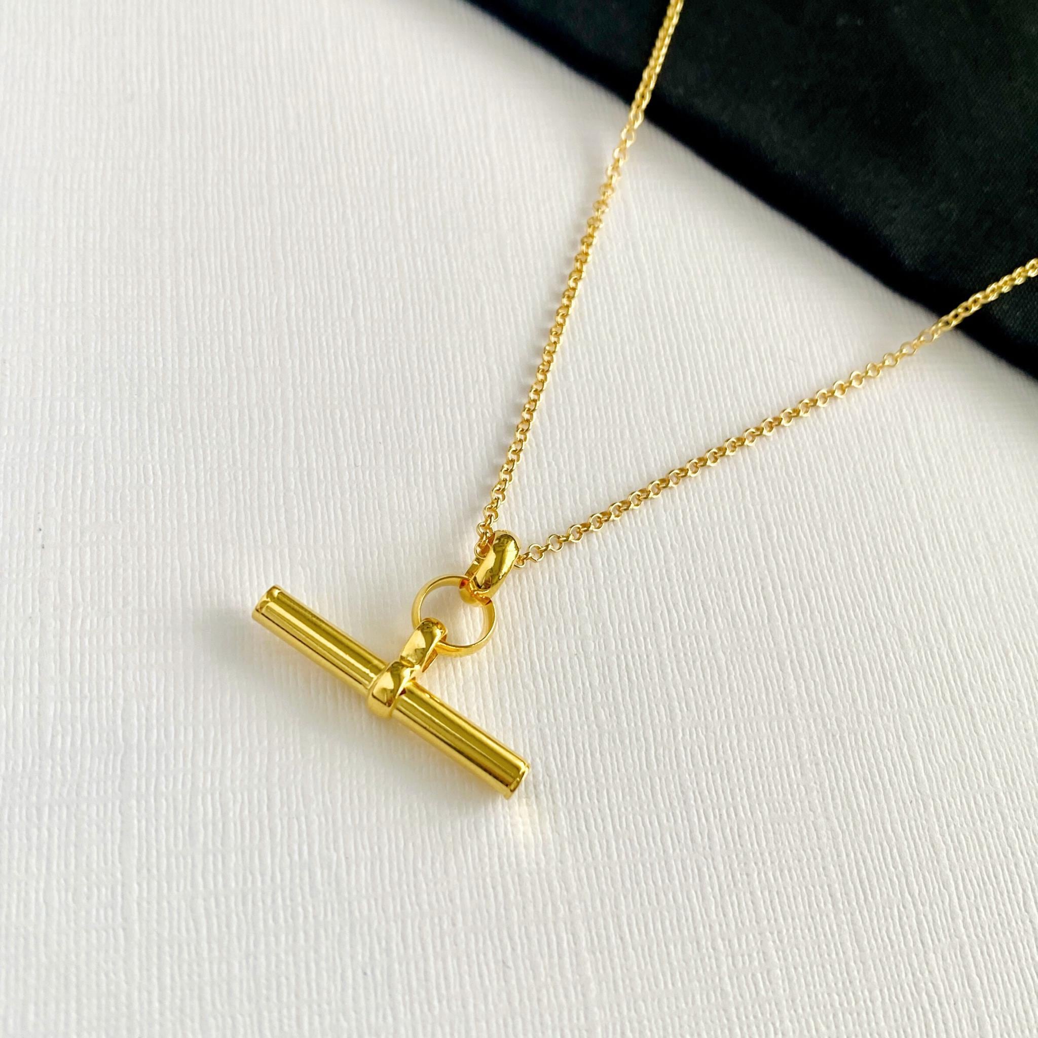 • TITAN. T Bar Necklace, Gold T Bar Necklace, T Bar Pendant Necklace,...