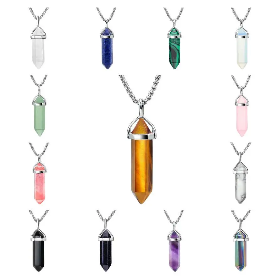 stainless steel natural stone necklace for Women Men Tiger Eye Turquoise Opal White Lapis Lazuli Ros...