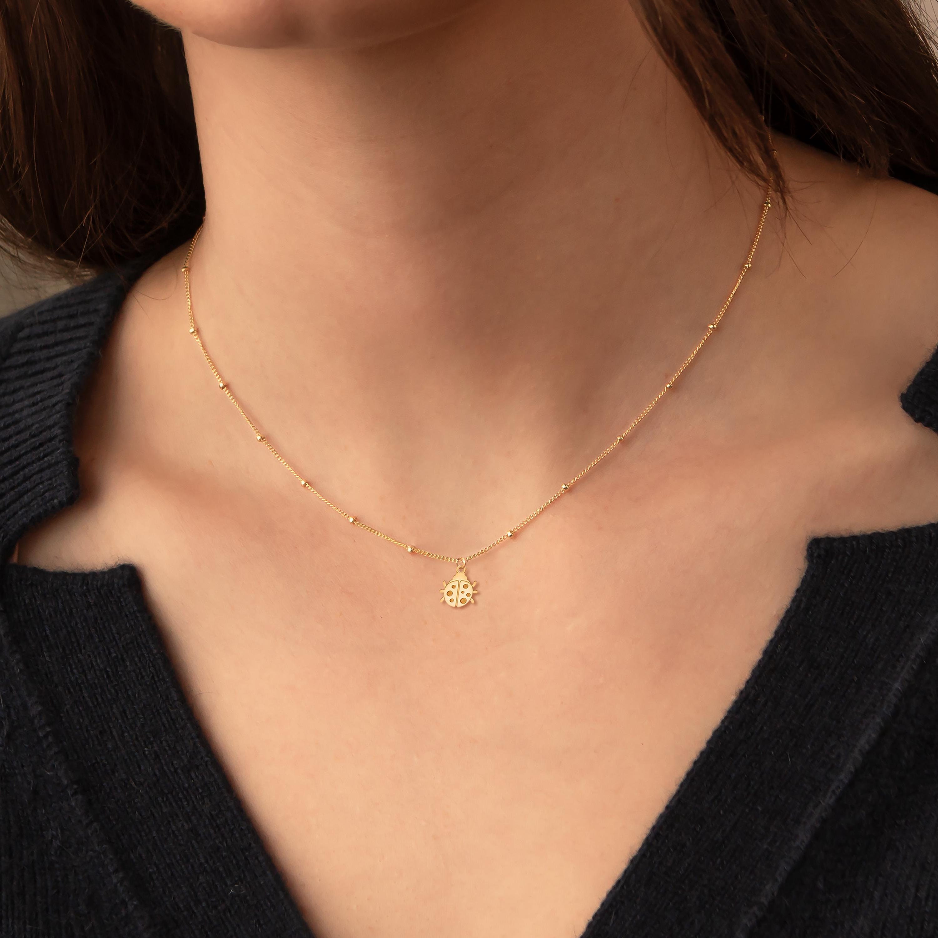 Ladybug Necklace With Enamel, Gold Ladybird Necklace, Ladybug Charm...