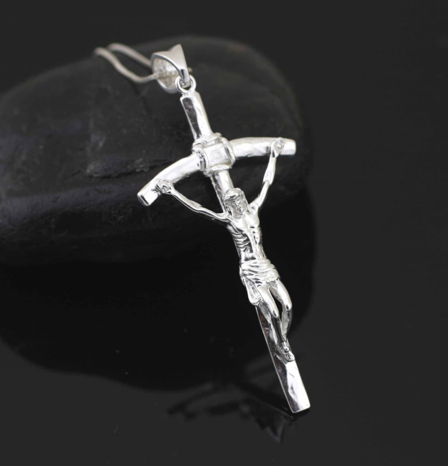 Silver Large Cross Necklace, Sterling Silver Large Crucifix Necklac...
