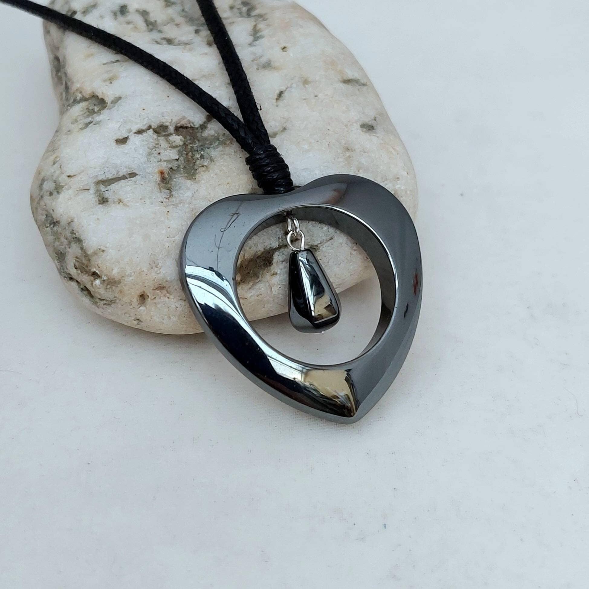 Hematite Heart Pendant - Hematite Large Heart Necklace - Large Hear...