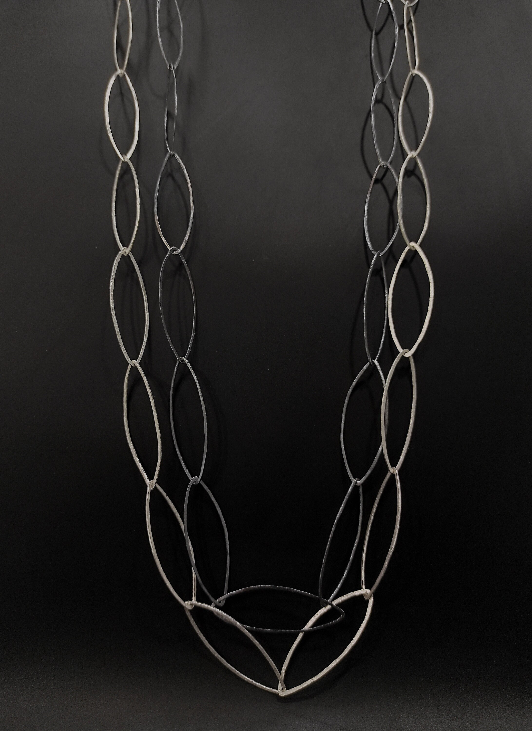 Large Oval Link Chain Necklace Hammered Silver & Oxidized Silve...