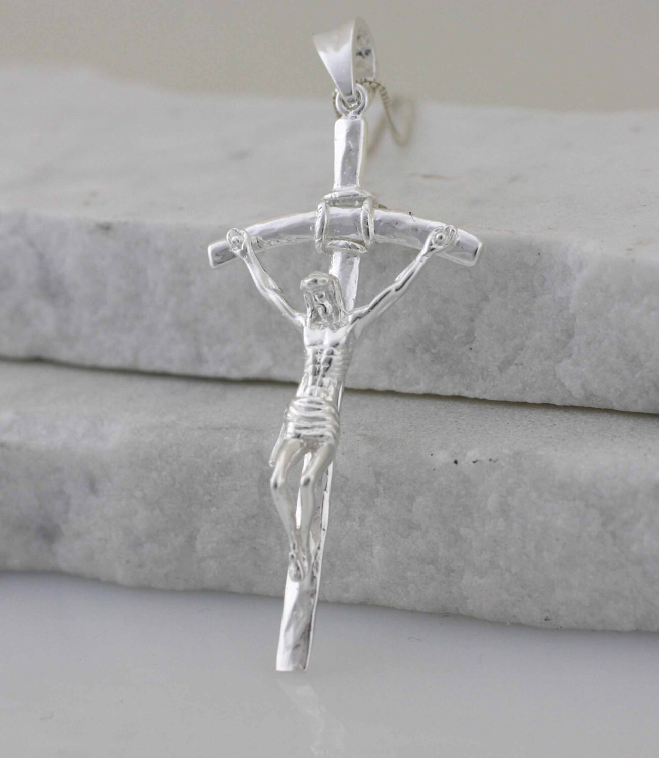 Silver Large Cross Necklace, Sterling Silver Large Crucifix Necklac...