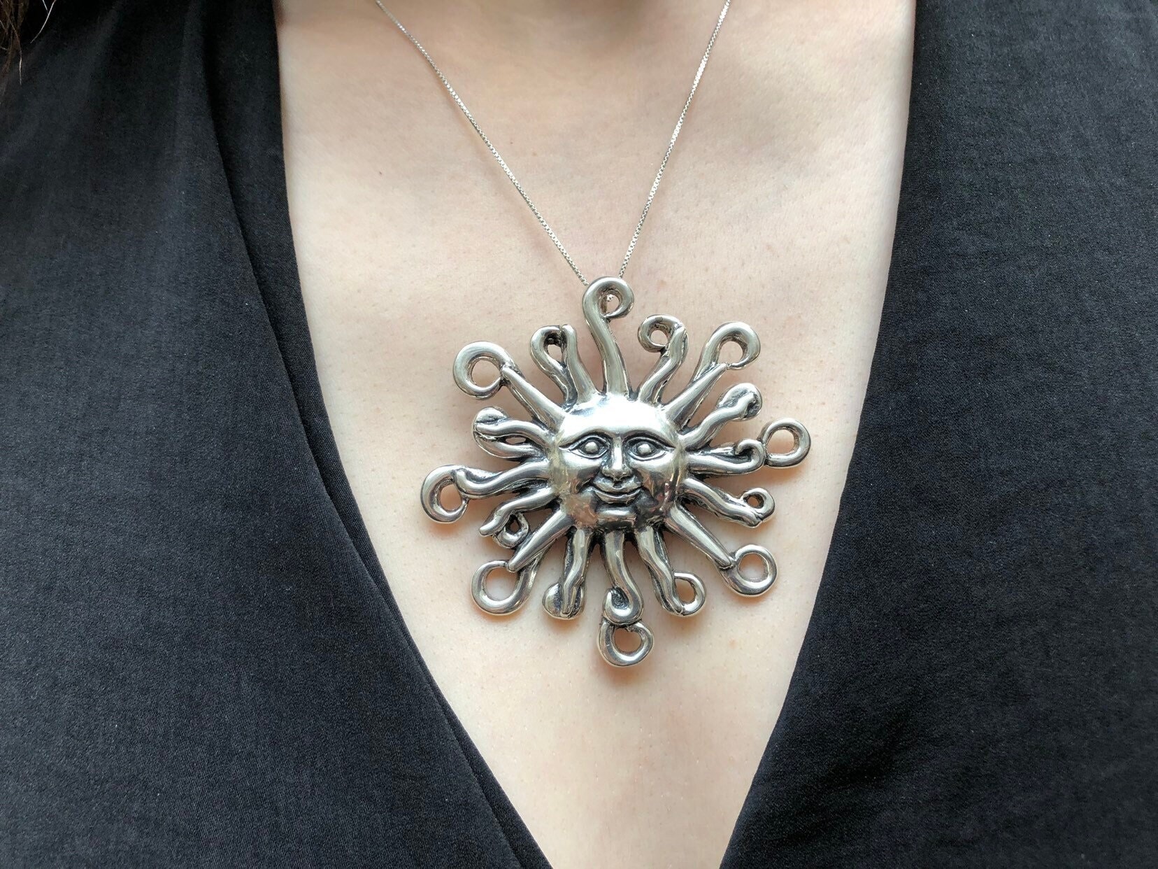 Silver Sun Pendant, Sun Pendant, Large Silver Pendant, Large Sun Pe...