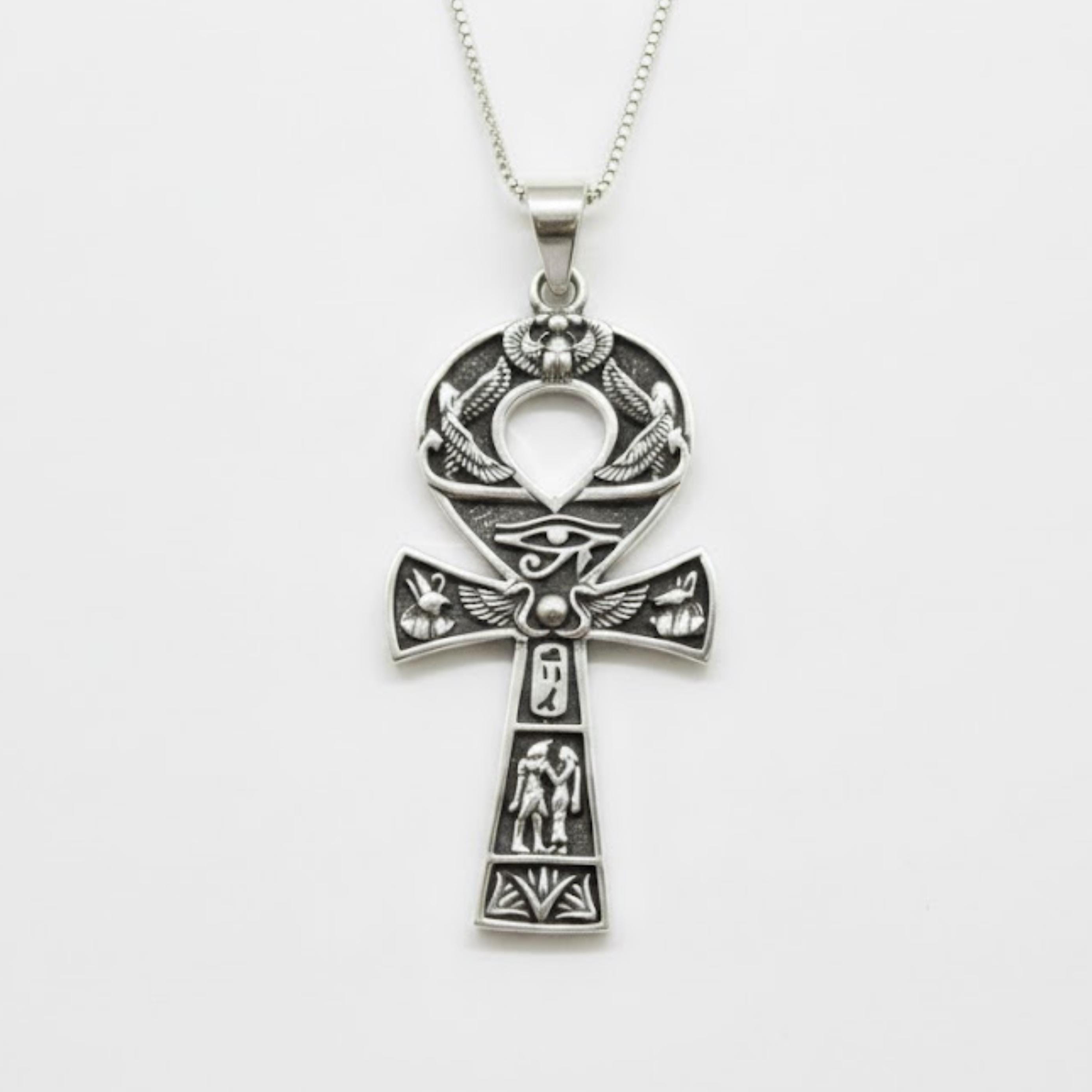Large Cross Necklace, Silver Egyptian Necklace, Silver Ankh Pendant...