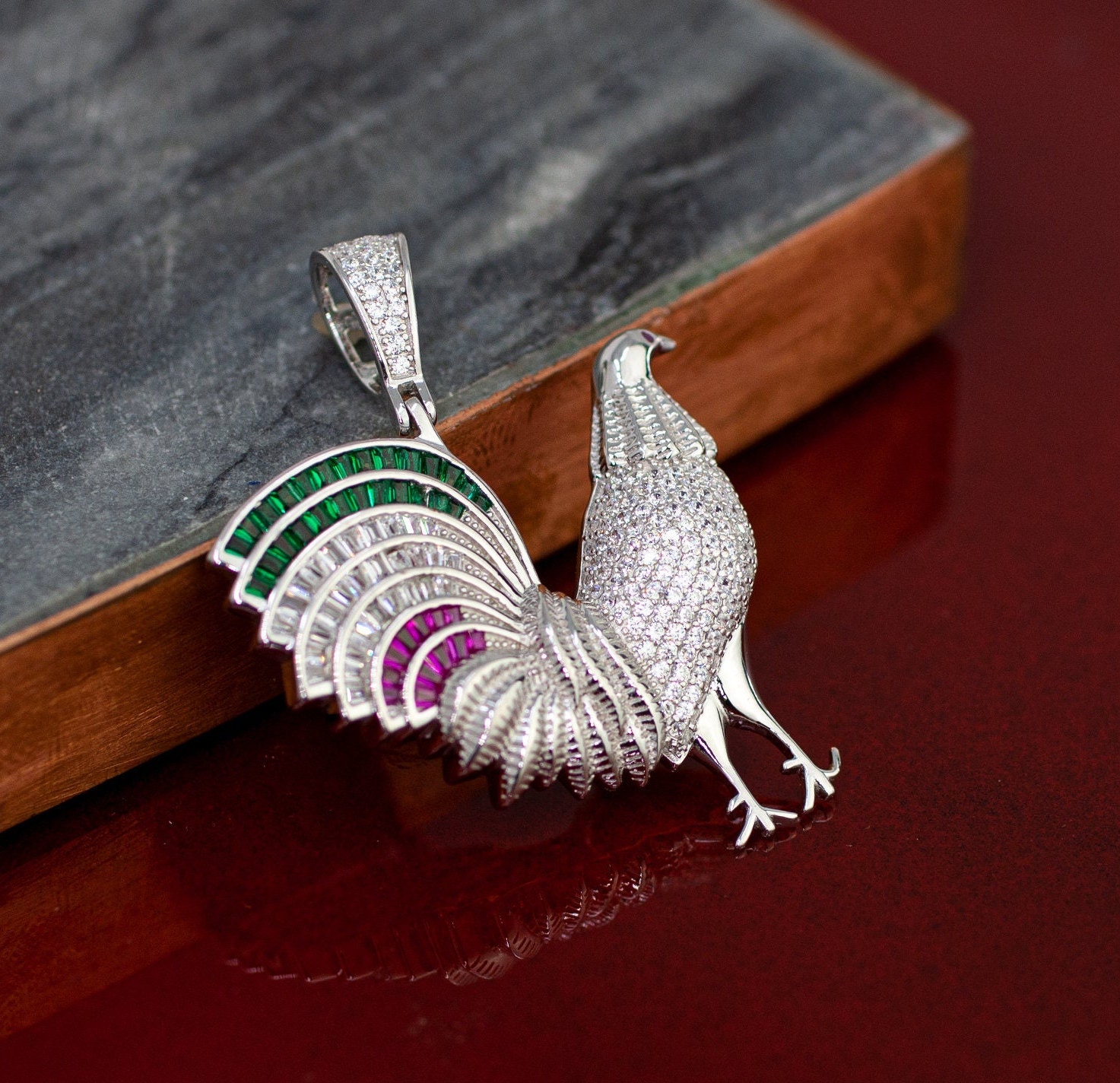 Large Sterling Silver Rooster Necklace, Silver Mexican Rooster Neck...
