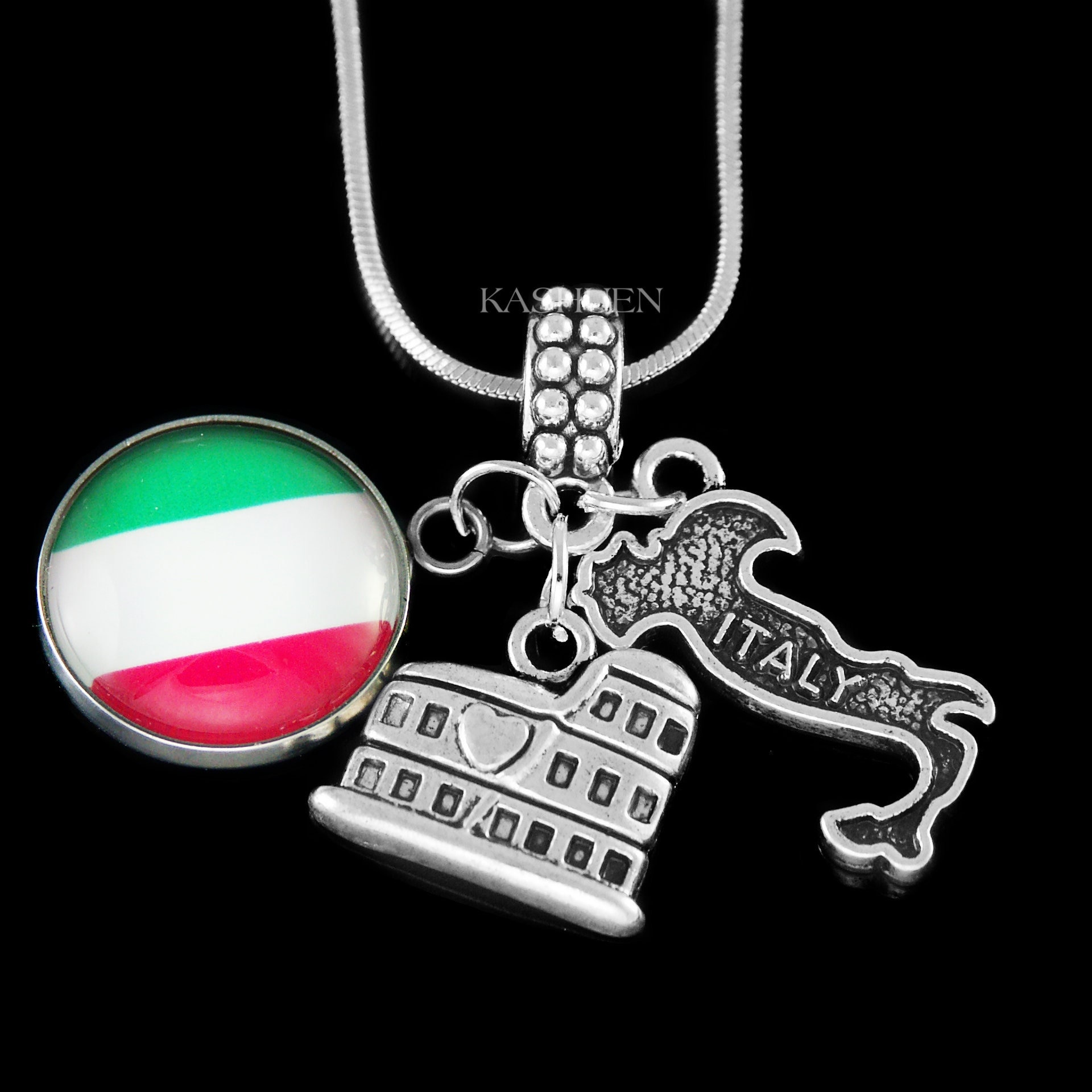 Italy Flag Italian Map Rome Roman Colosseum Necklace, Europe Travel...