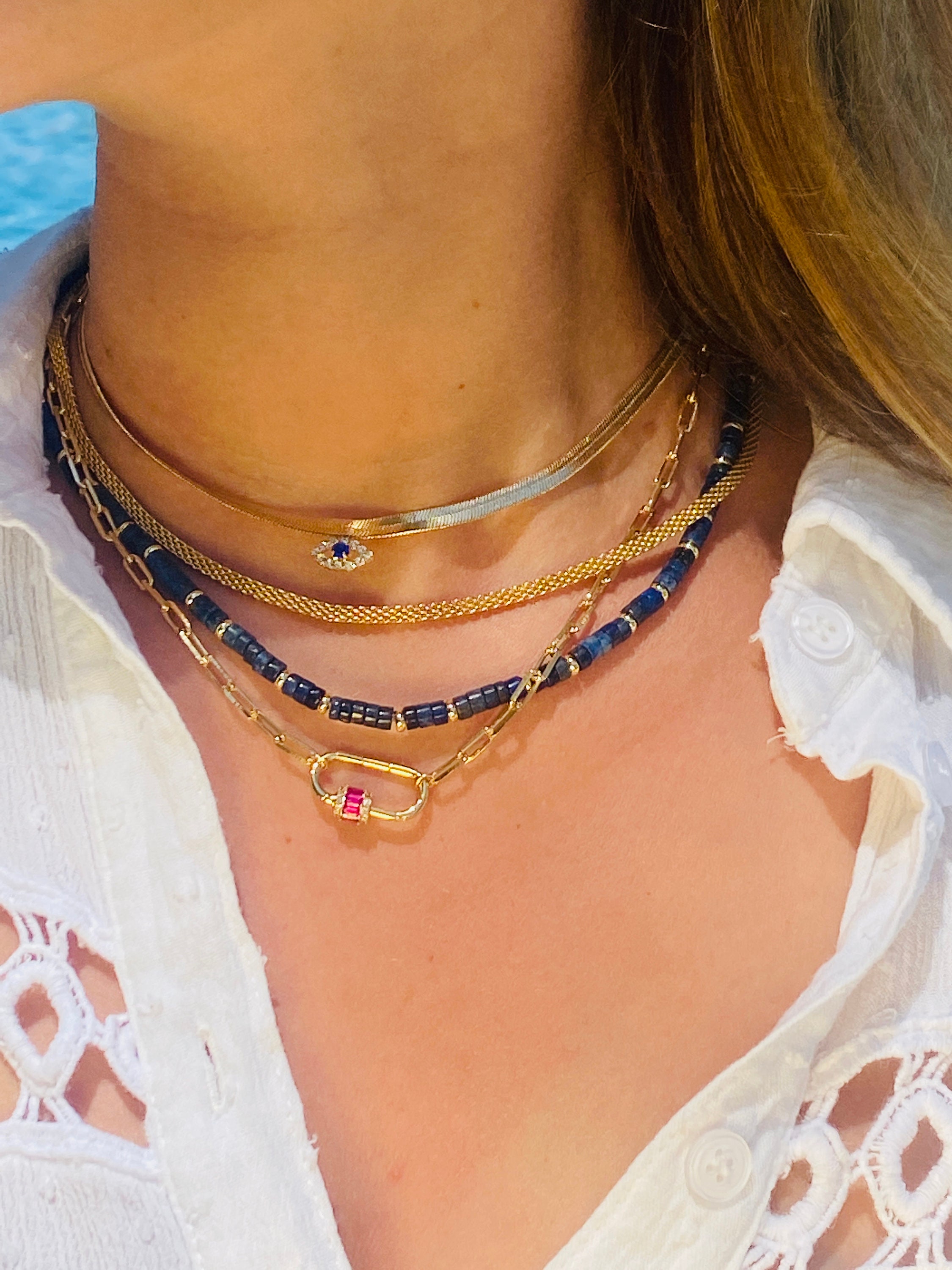 Blue Lapis Gemstone Necklace,Boho Necklace,Summer Necklace,Blue bea...