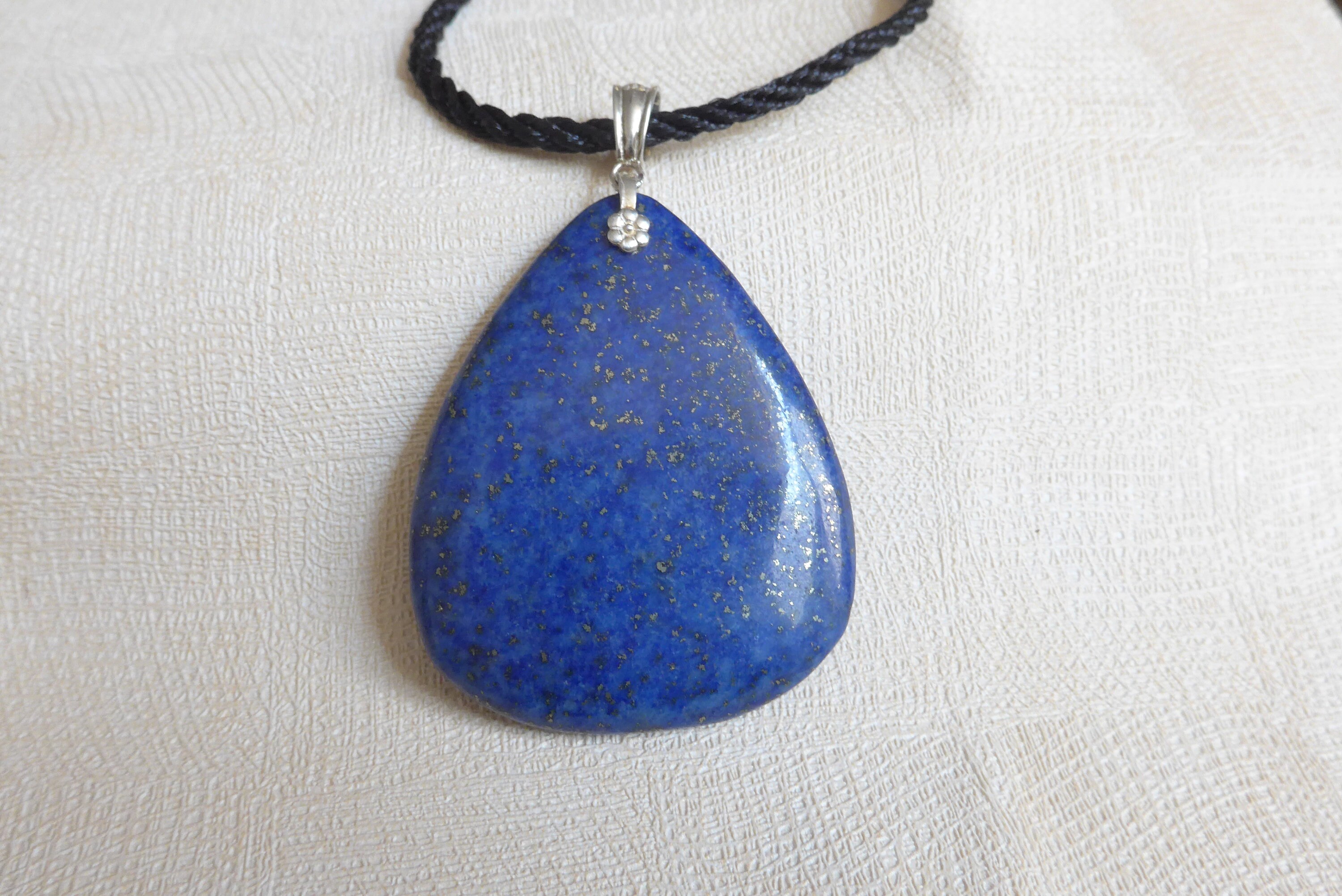 Genuine lapis lazuli gemstone pendant,teardrop pendant, statement mans necklace, blue gemstone jewel...