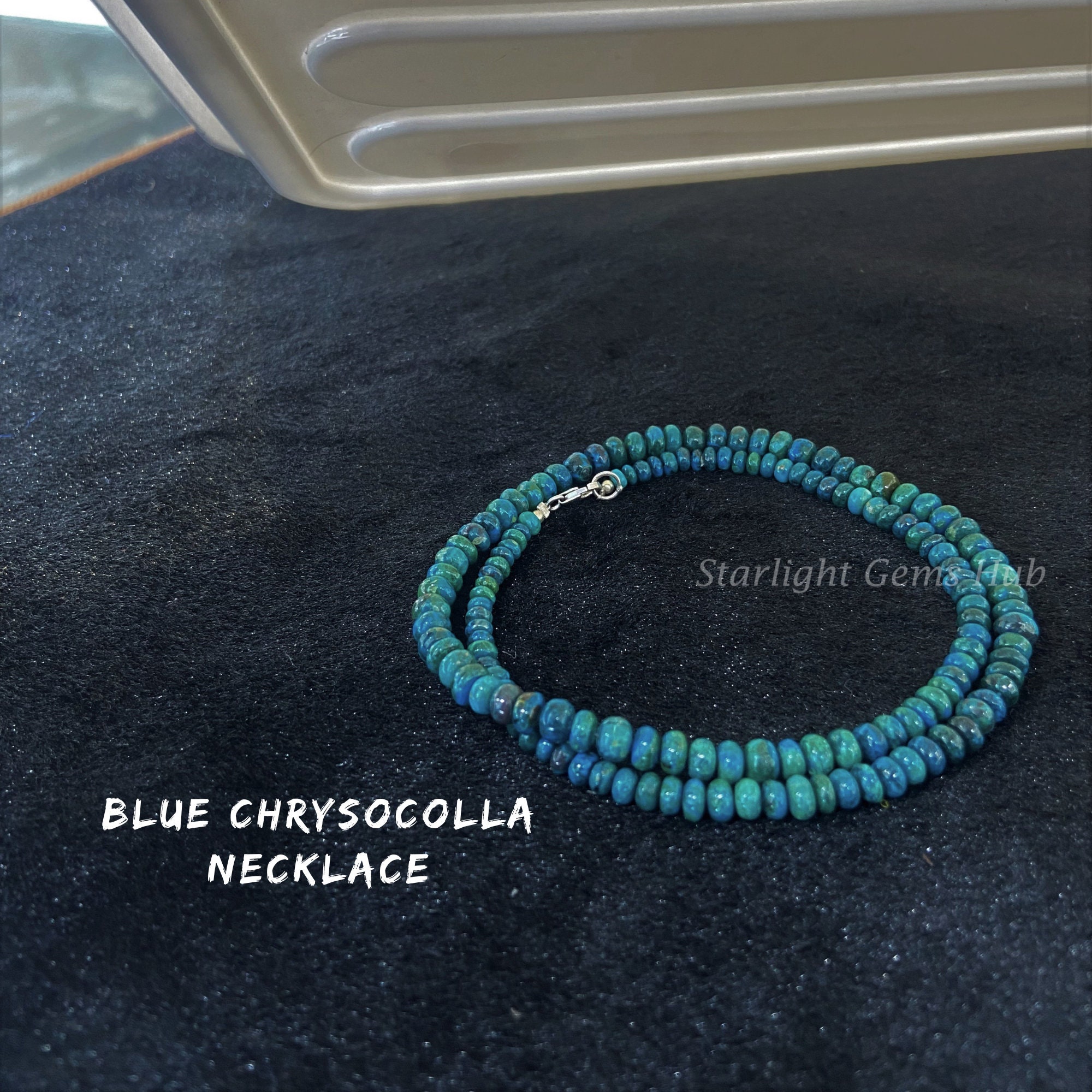 Natural Blue Chrysocolla gemstone necklace-4mm-6mm smooth rondelle ...