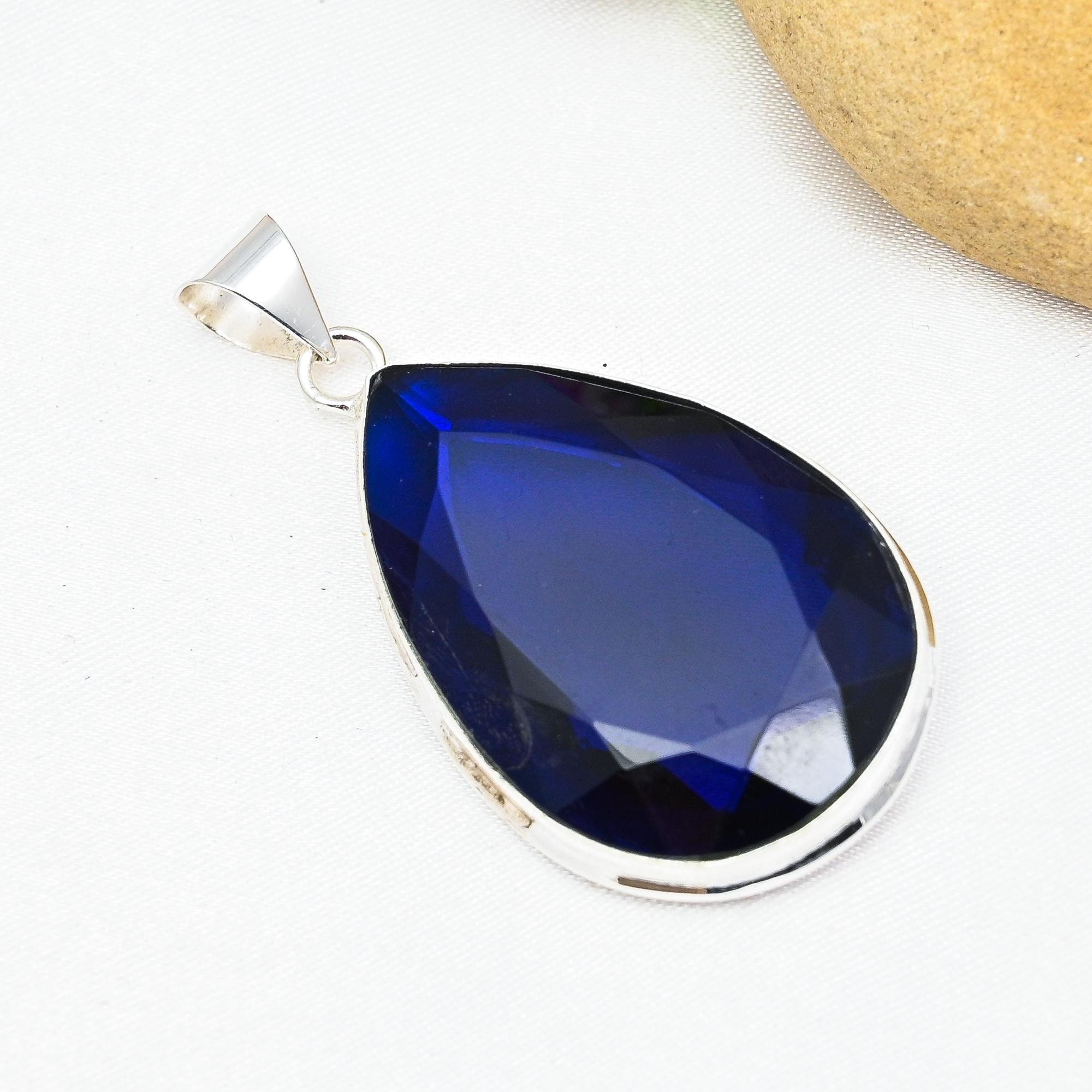 Blue Sapphire Gemstone Pendant 925 Sterling Silver Jewelry, Sapphire Gemstone, Statement Jewelry, Ev...