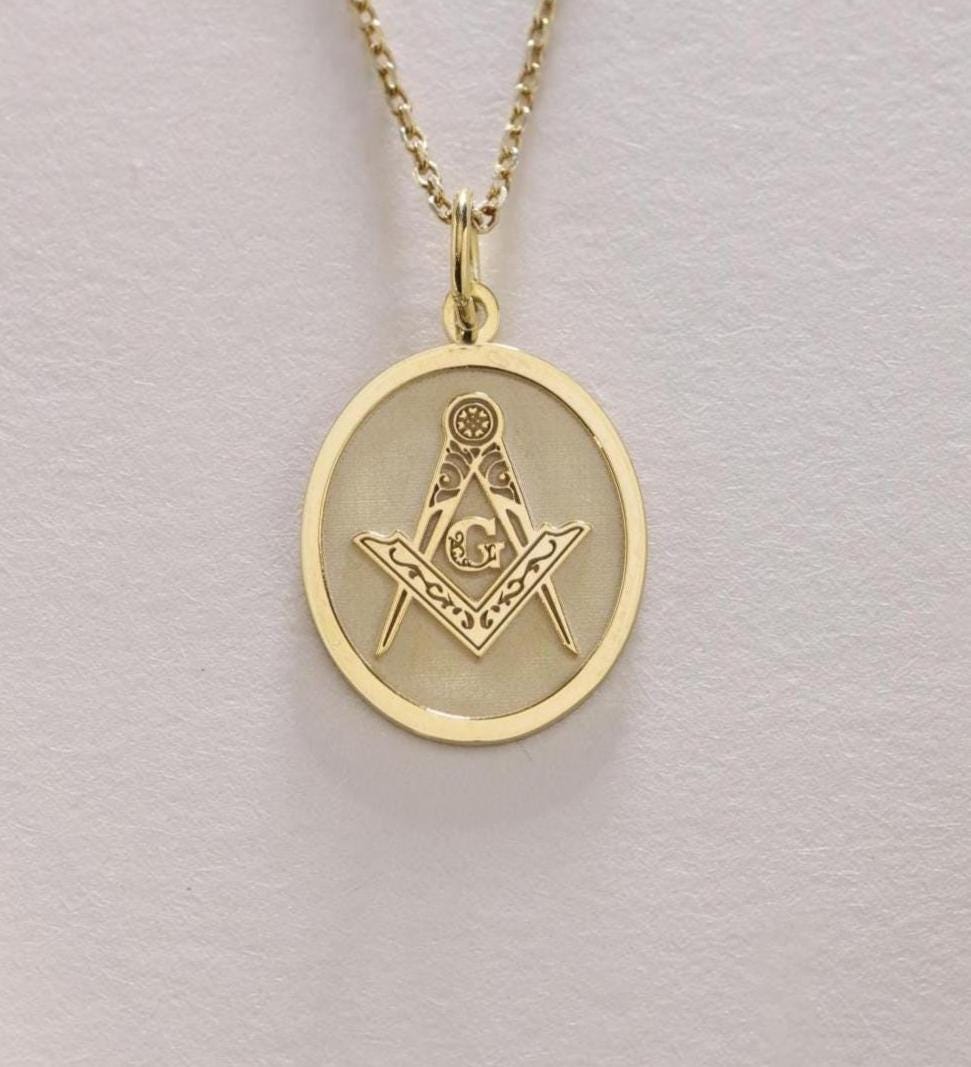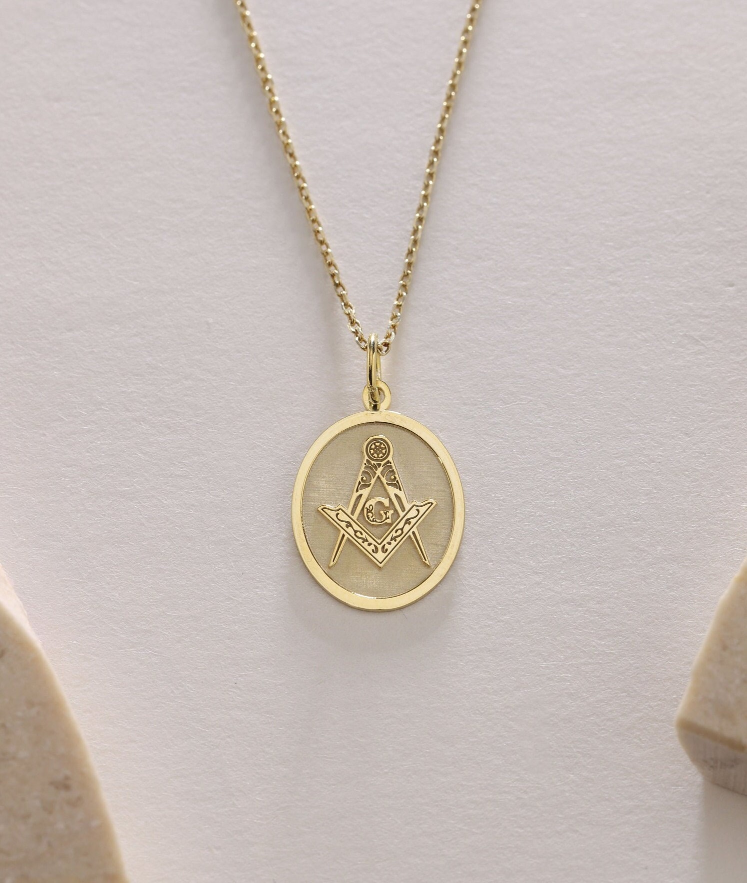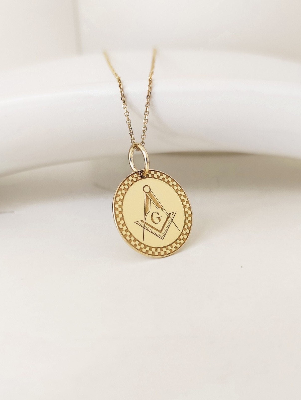 14k Gold Masonic Necklace , Solid Gold Masonic Pendant , Personaliz...