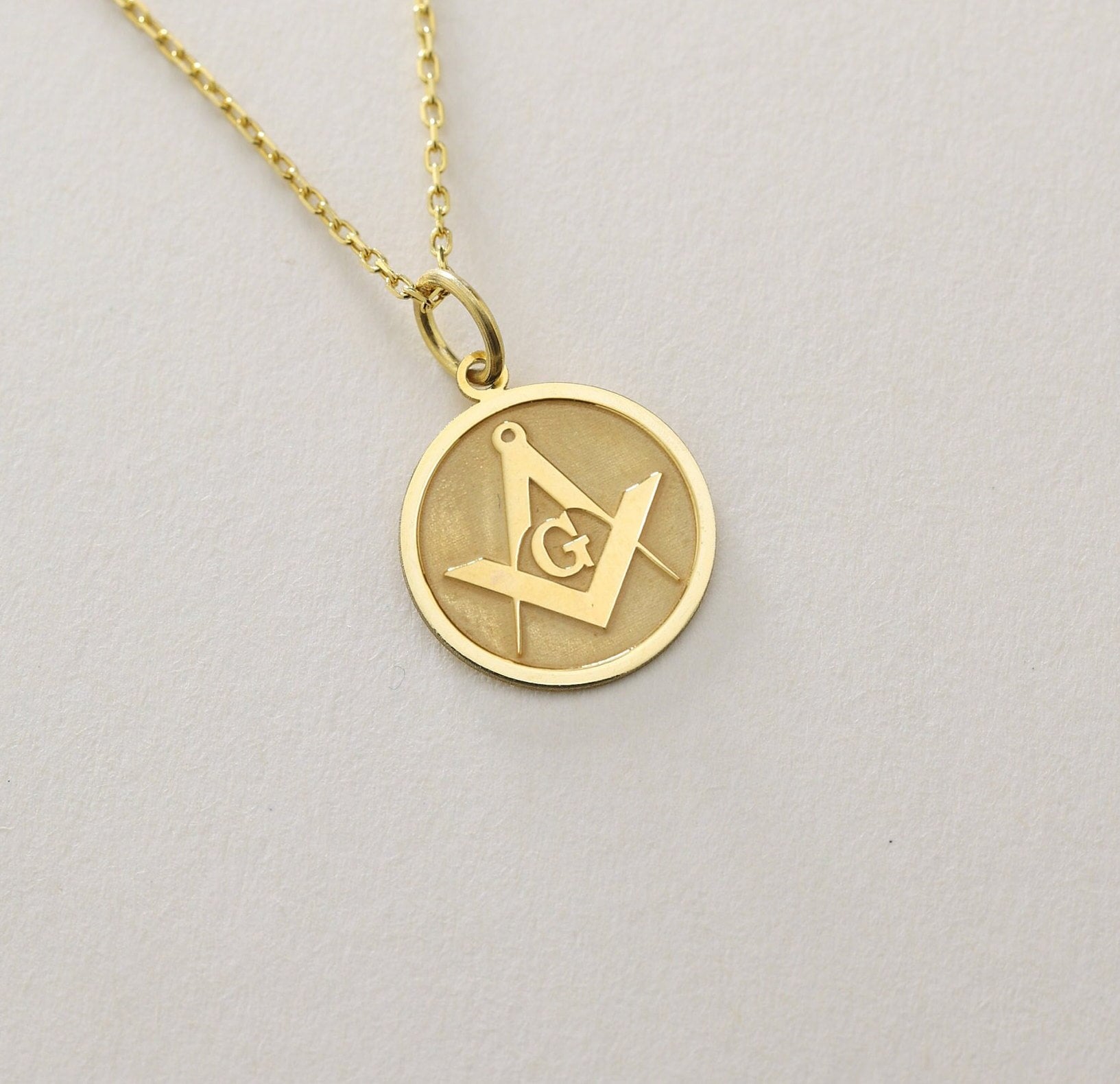 14K Solid Real Gold Masonic Necklace, Gold Layered Masonic Pendant,...