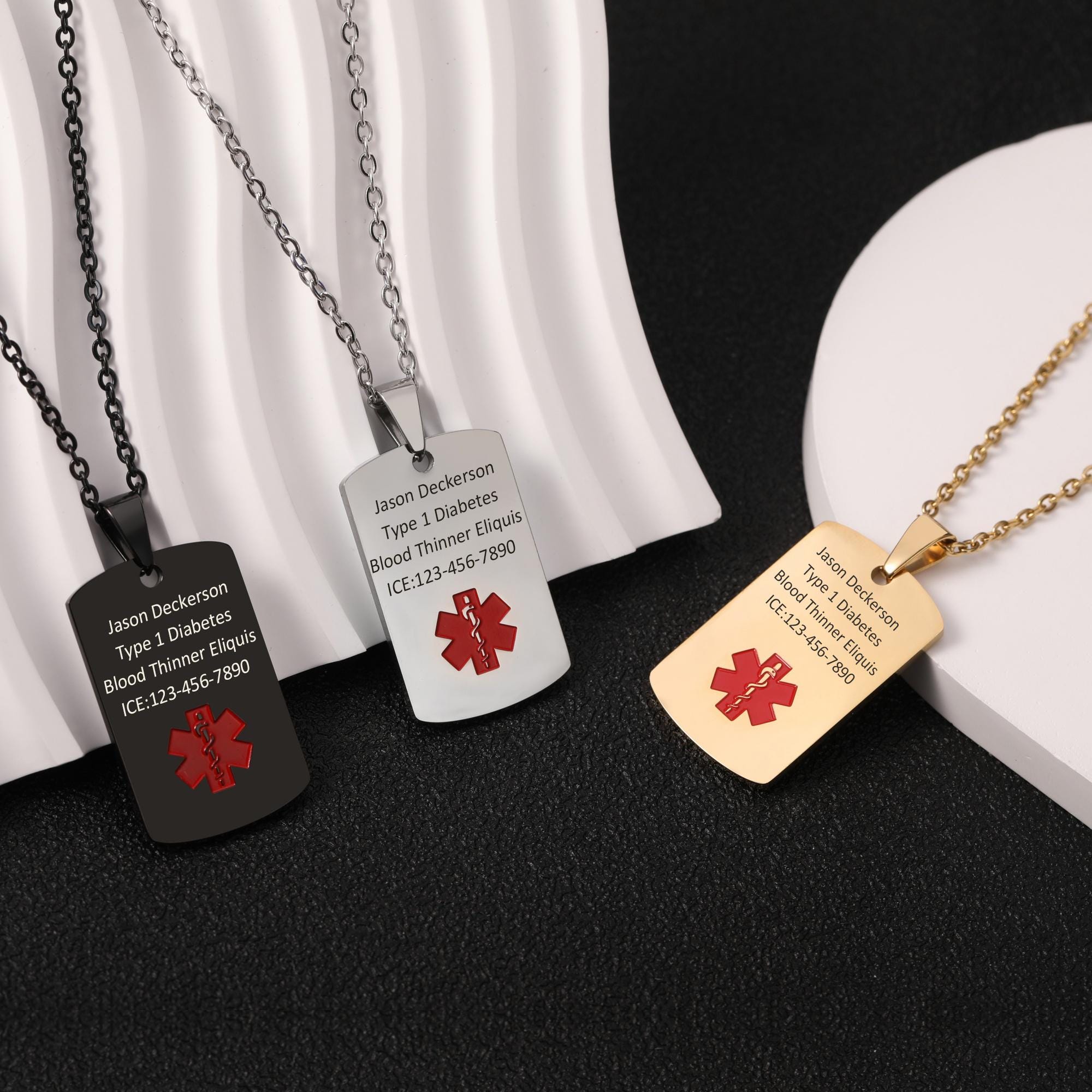 "Personalized Medical Alert Necklace for Men,Engraved Medical ID Tag,Medical ID Necklace,Autism...