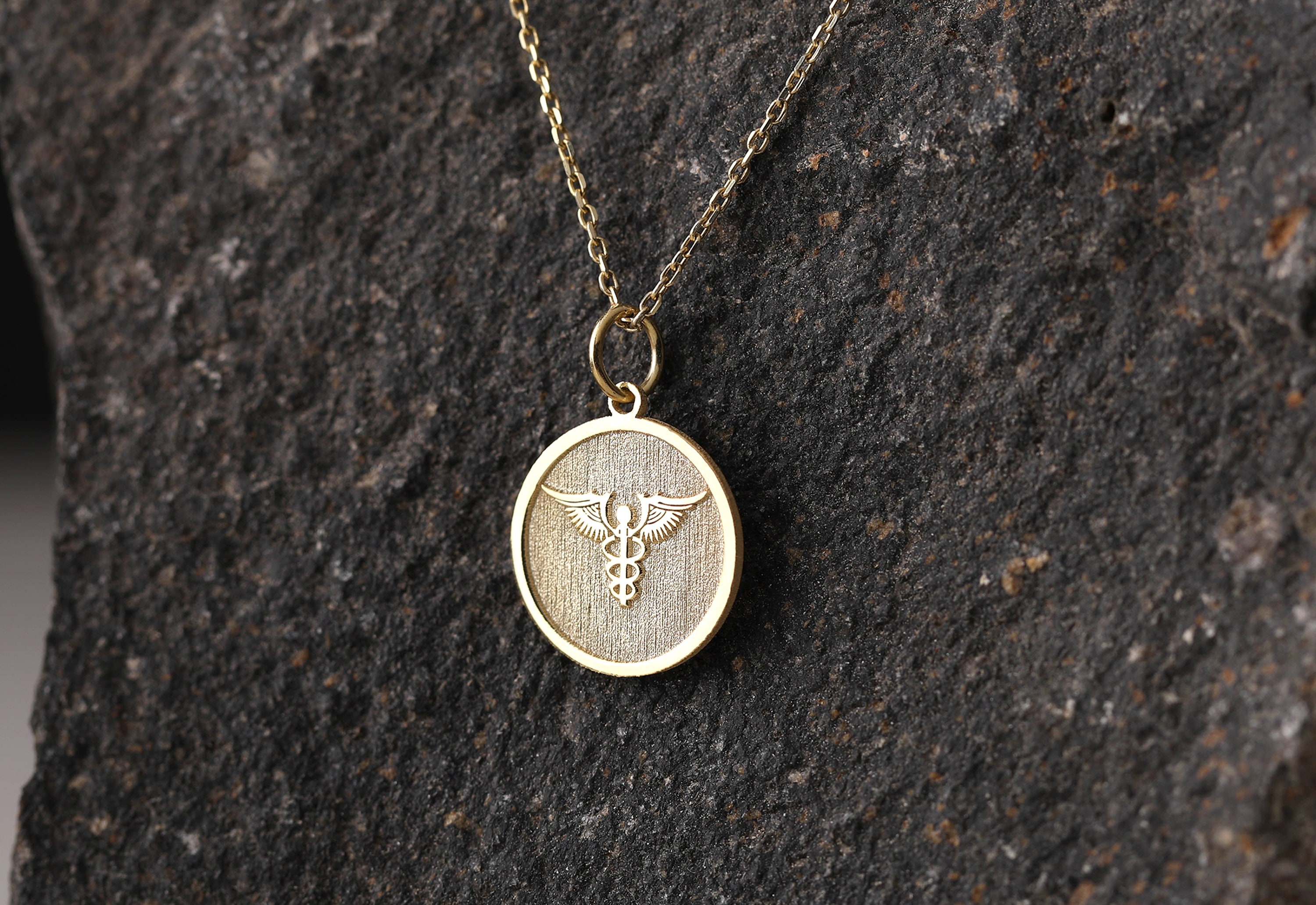 Caduceus Necklace Gold Caduceus Pendant Medical Jewelry Gift for He...