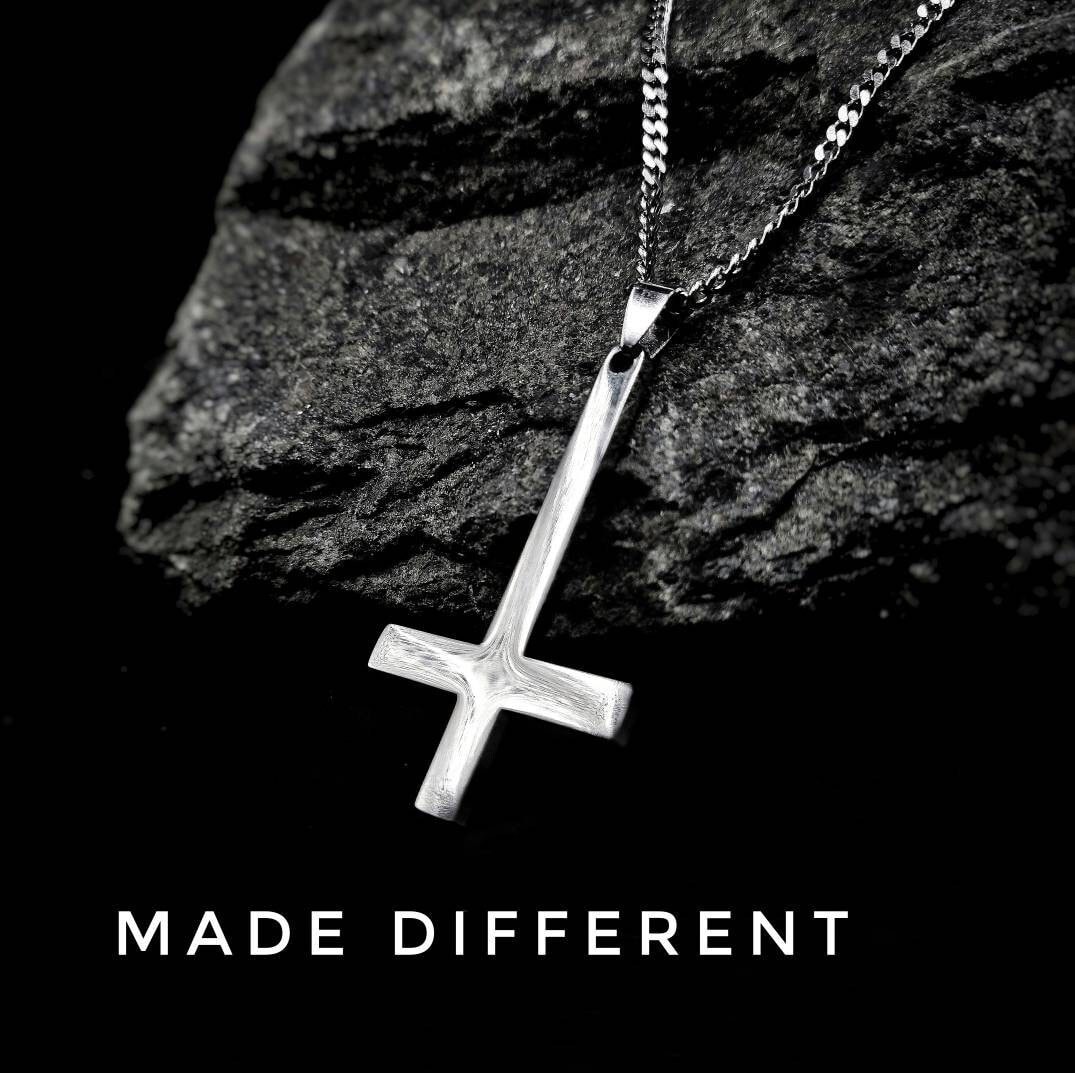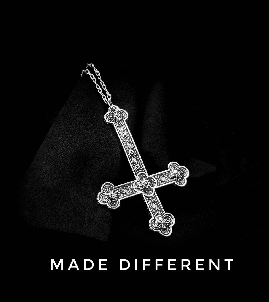 Large Inverted Cross Pendant Necklace Silver Gothic Statement Upsid...