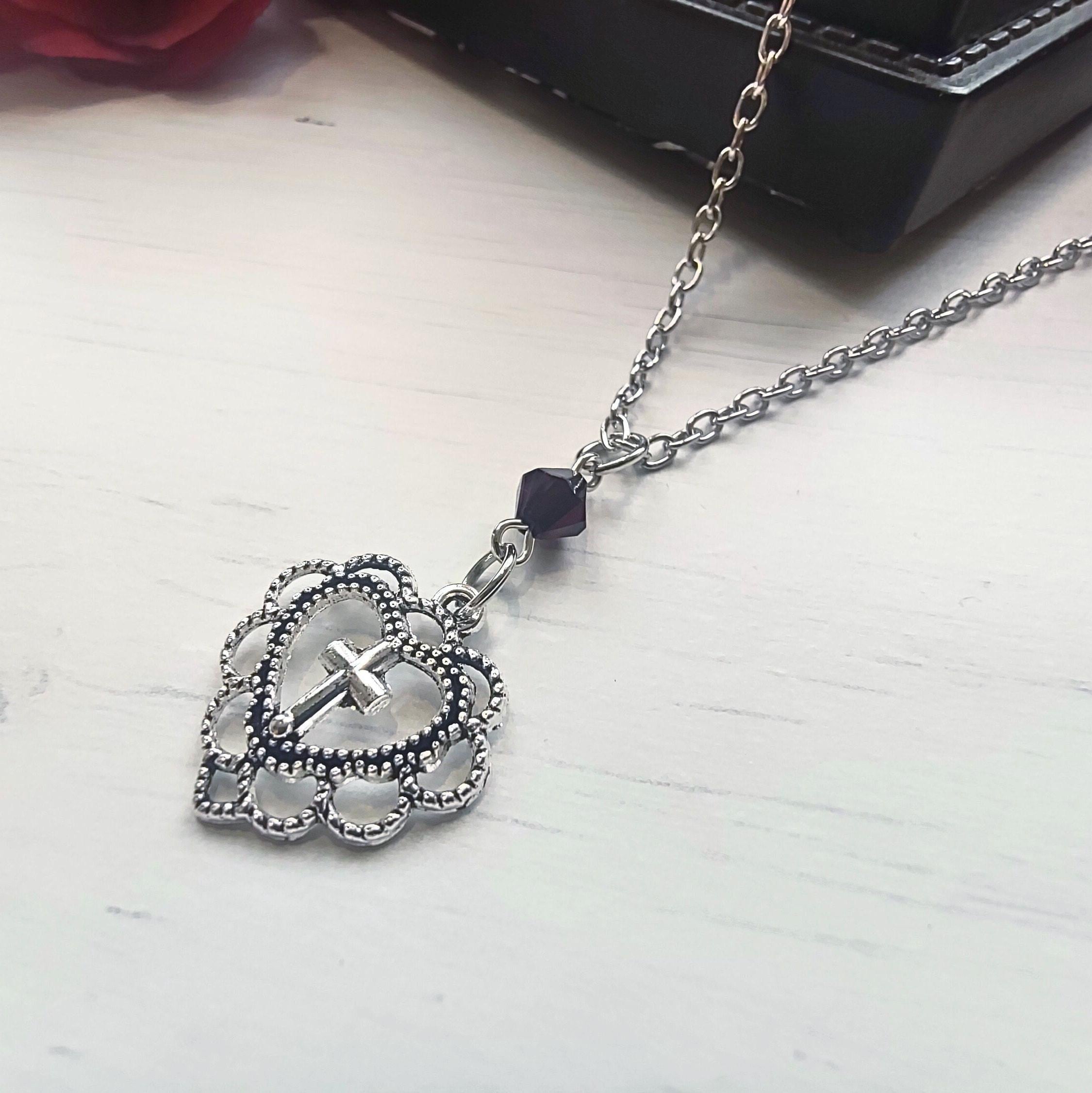 Gothic Cross Necklace inside Victorian Heart, Gothic Necklace, Goth...
