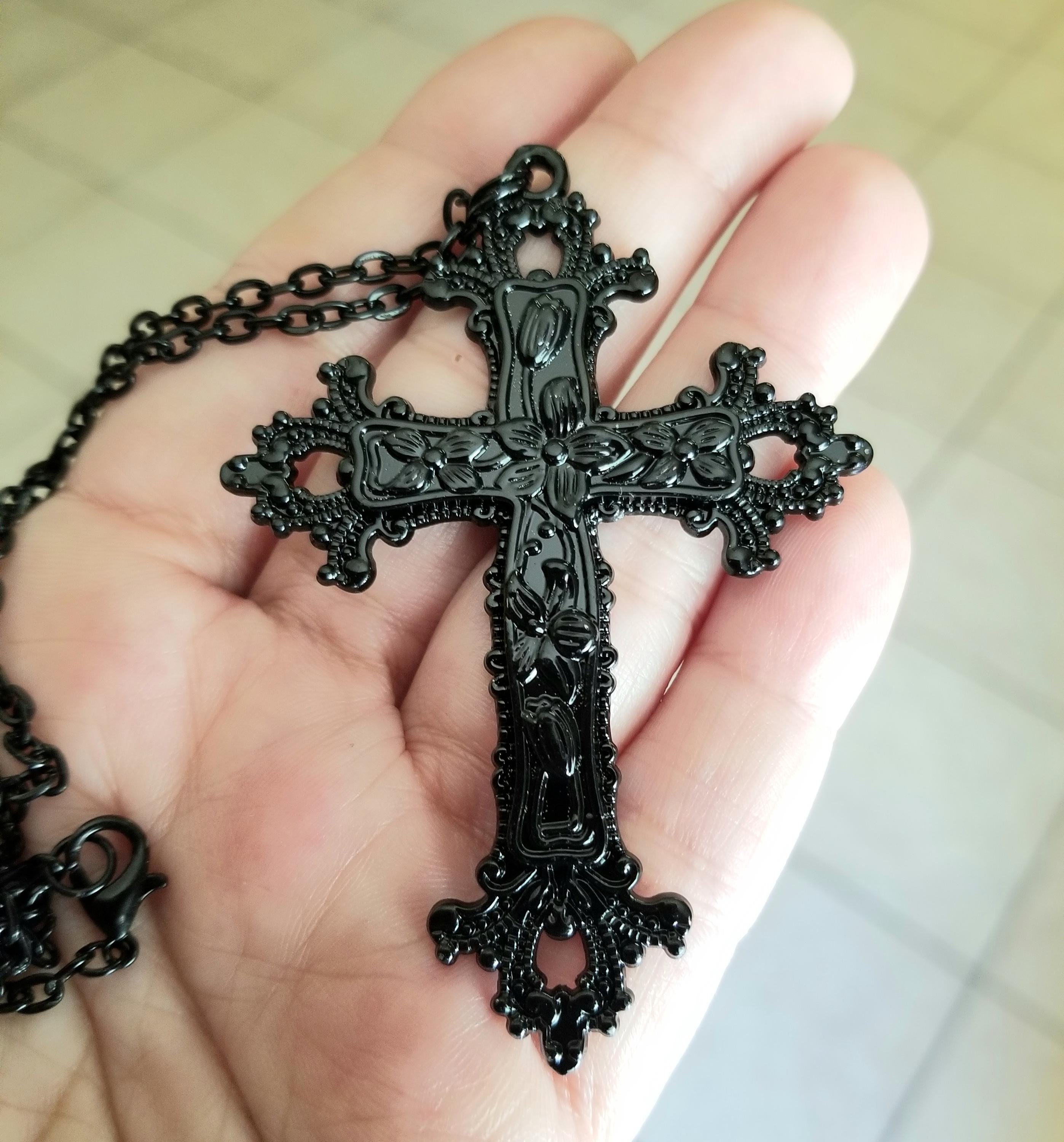 Black Cross Necklace, Large Cross Necklace, Black Cross Necklace, W...