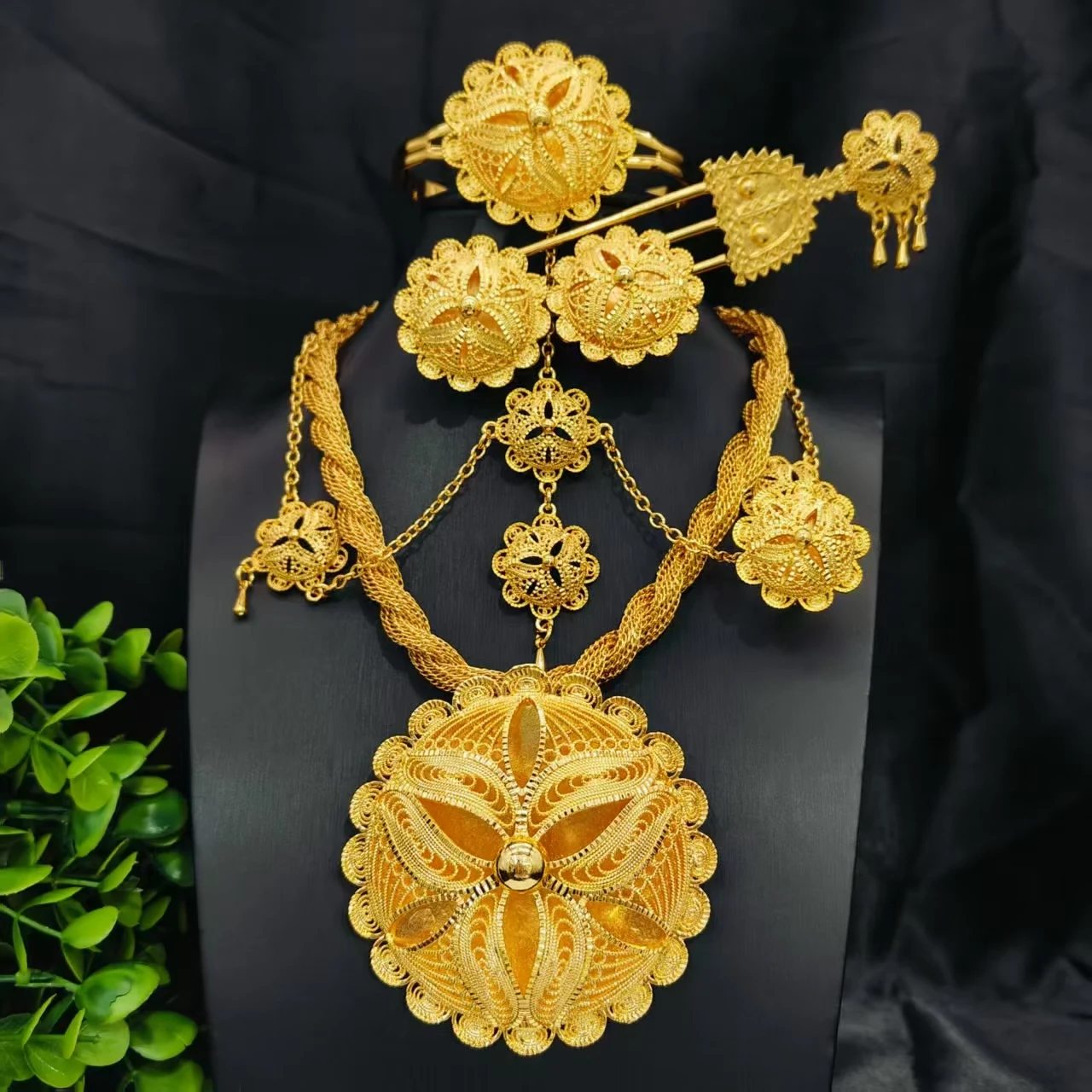 ANIID Indian Bridal Wedding 24k Gold Color Pendant Jewelry Set Afri...