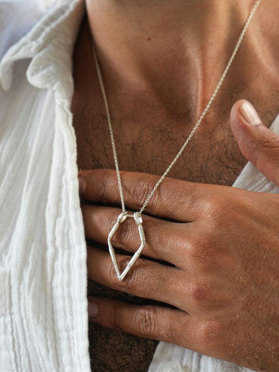 Ring Holder Necklace Silver, Geometric Ring Keeper Pendant Mens, Ri...