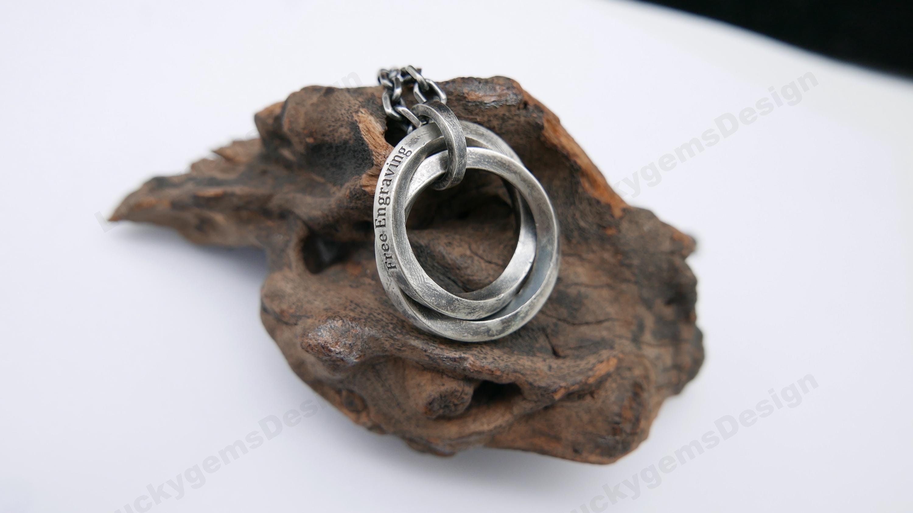 3 Ring Pendant Necklace For Men- Mens Long Boho Everyday Necklace- ...