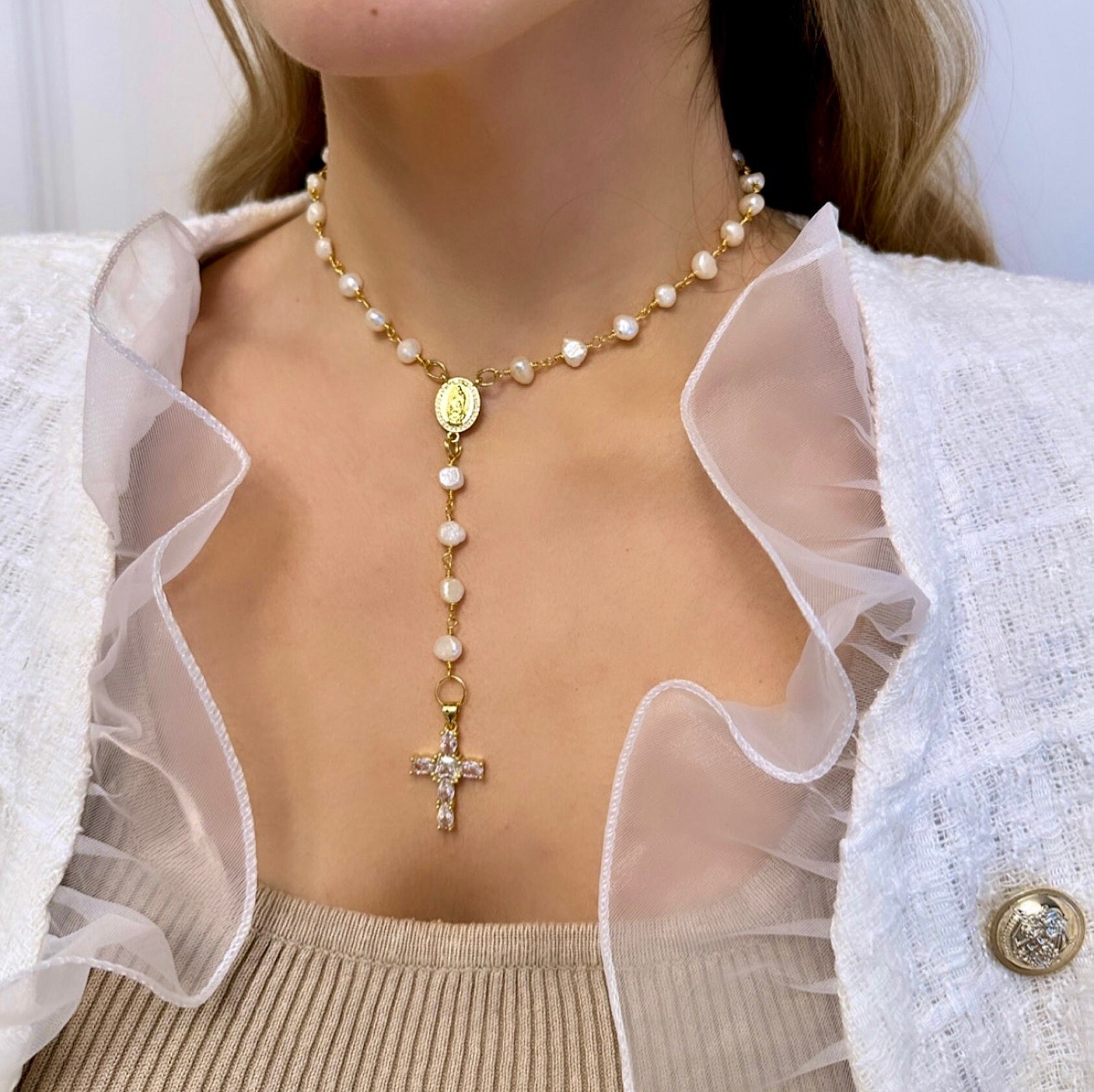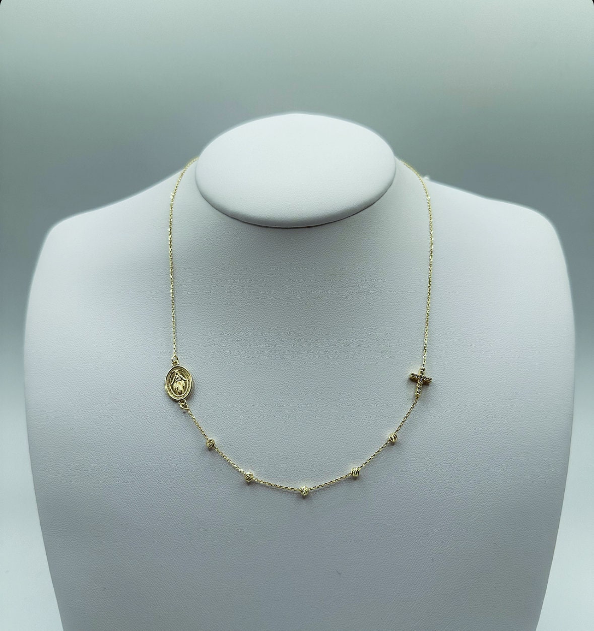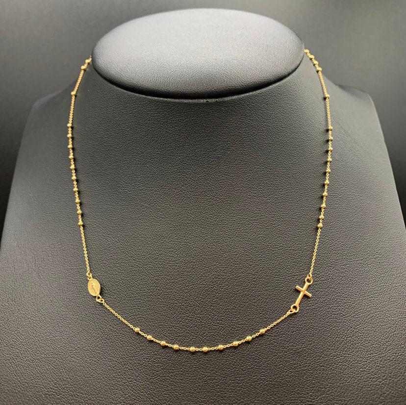 10K Gold Cross Rosary, Gold Rosary Necklace, Cross Stone Necklace, ...