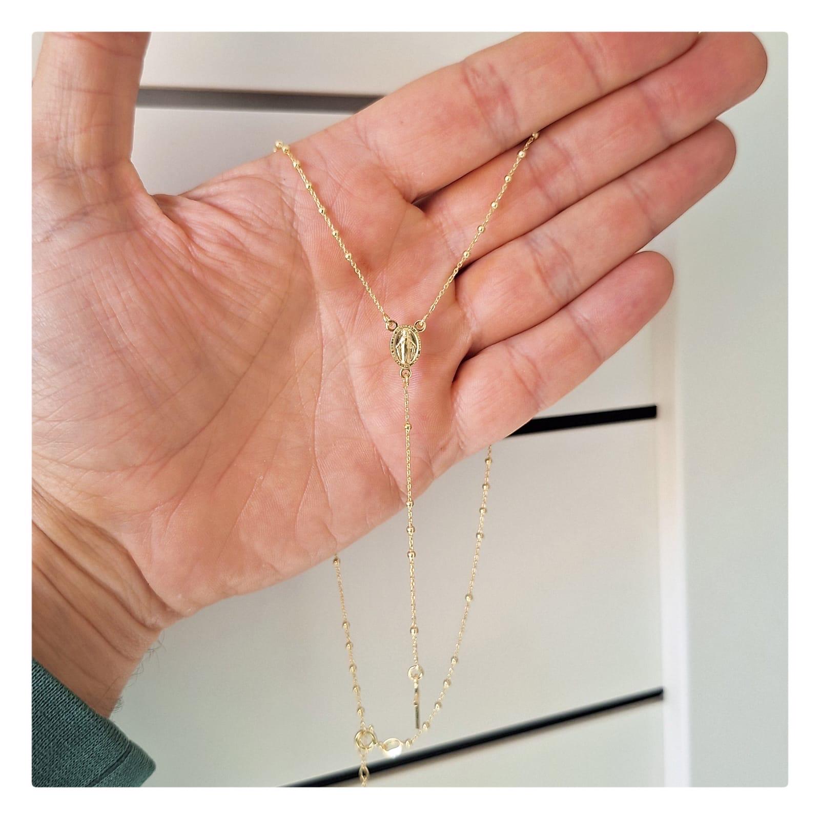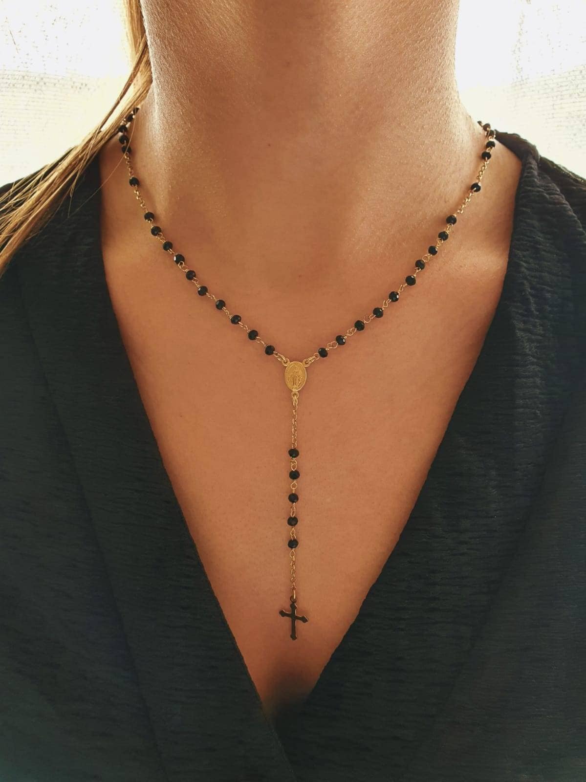 This beautiful rosary necklace is made in gold plated sterling silver rhodium plated so it doesn't t...