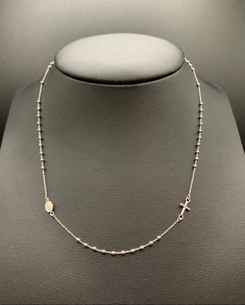 14K White Gold Rosary,14K Gold Beaded Rosary,White Gold Beaded Rosa...
